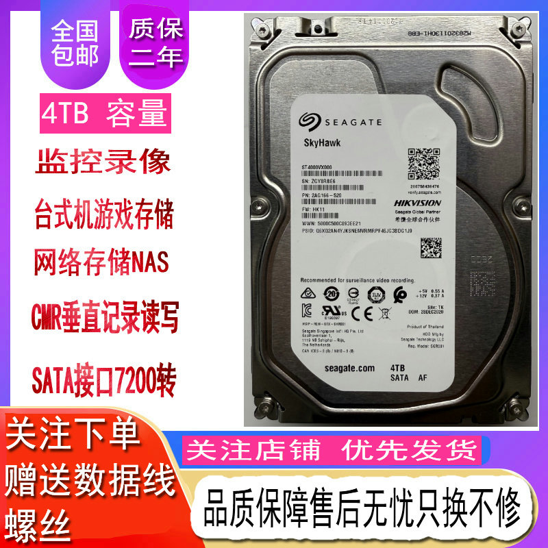 希捷1T 2T 4T 6T 酷鱼企业级机械硬盘台式机硬盘电脑扩容监控硬盘