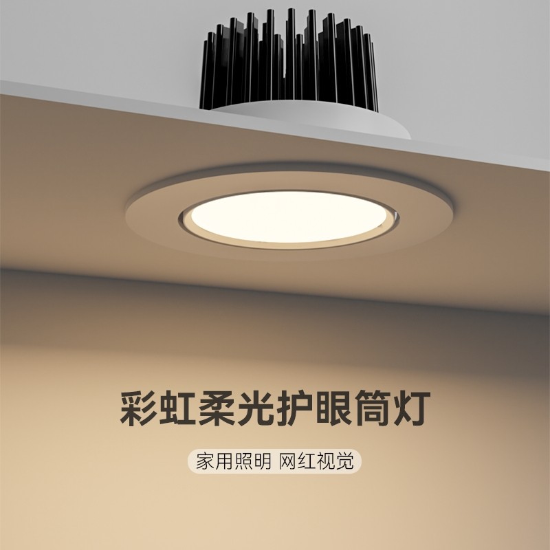 筒灯led嵌入式孔灯天花灯客厅家用走廊开孔75mm灯具三色照明山丘