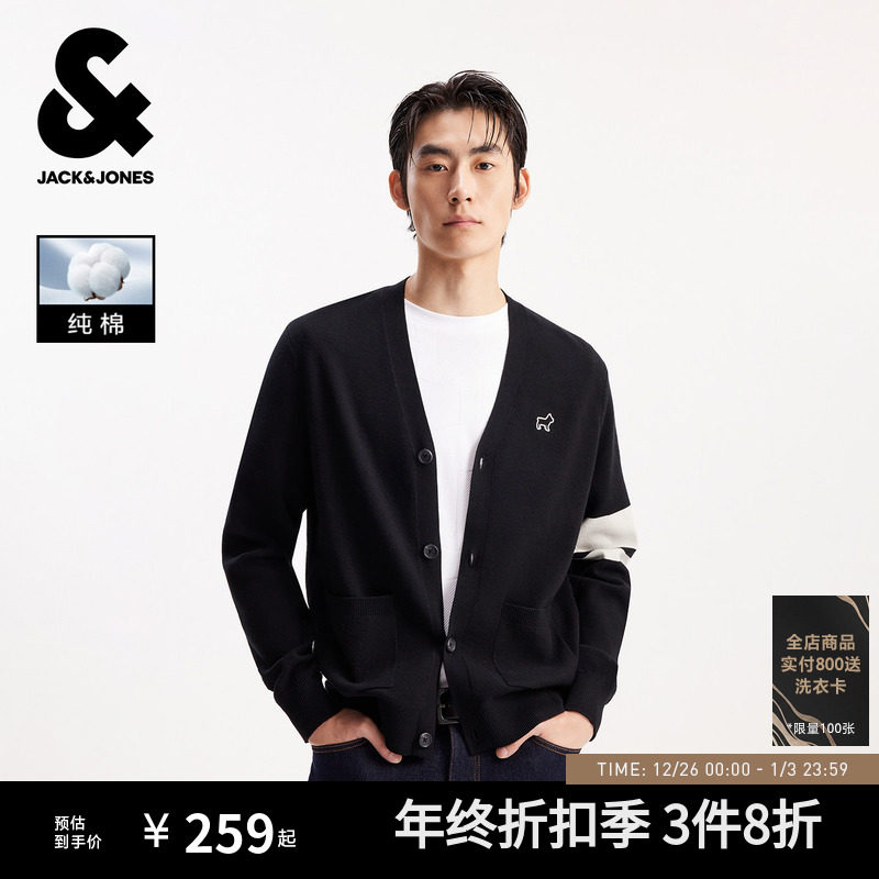 【衣启赢运】杰克琼斯男装25年秋季新款法斗犬含棉撞色针织衫上衣