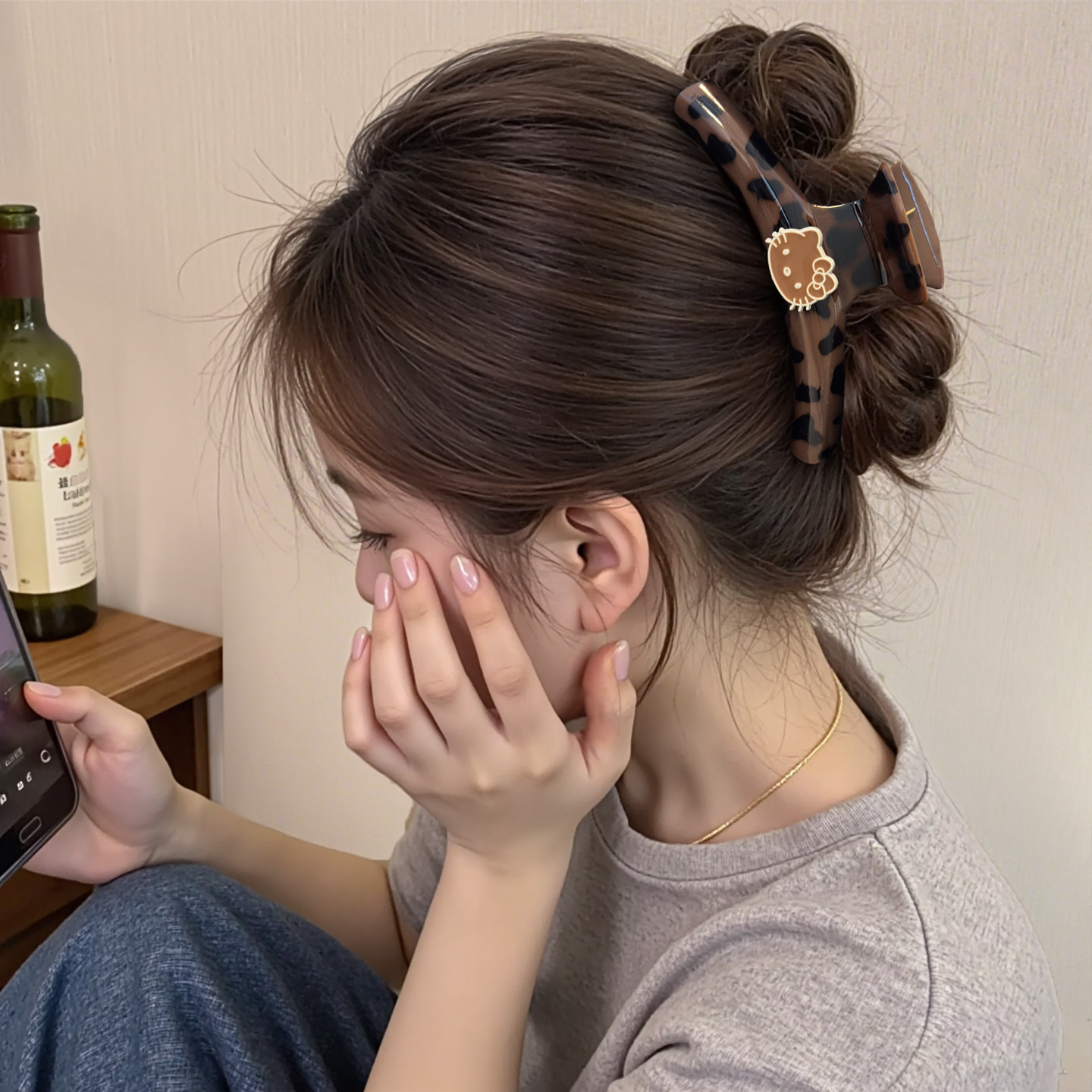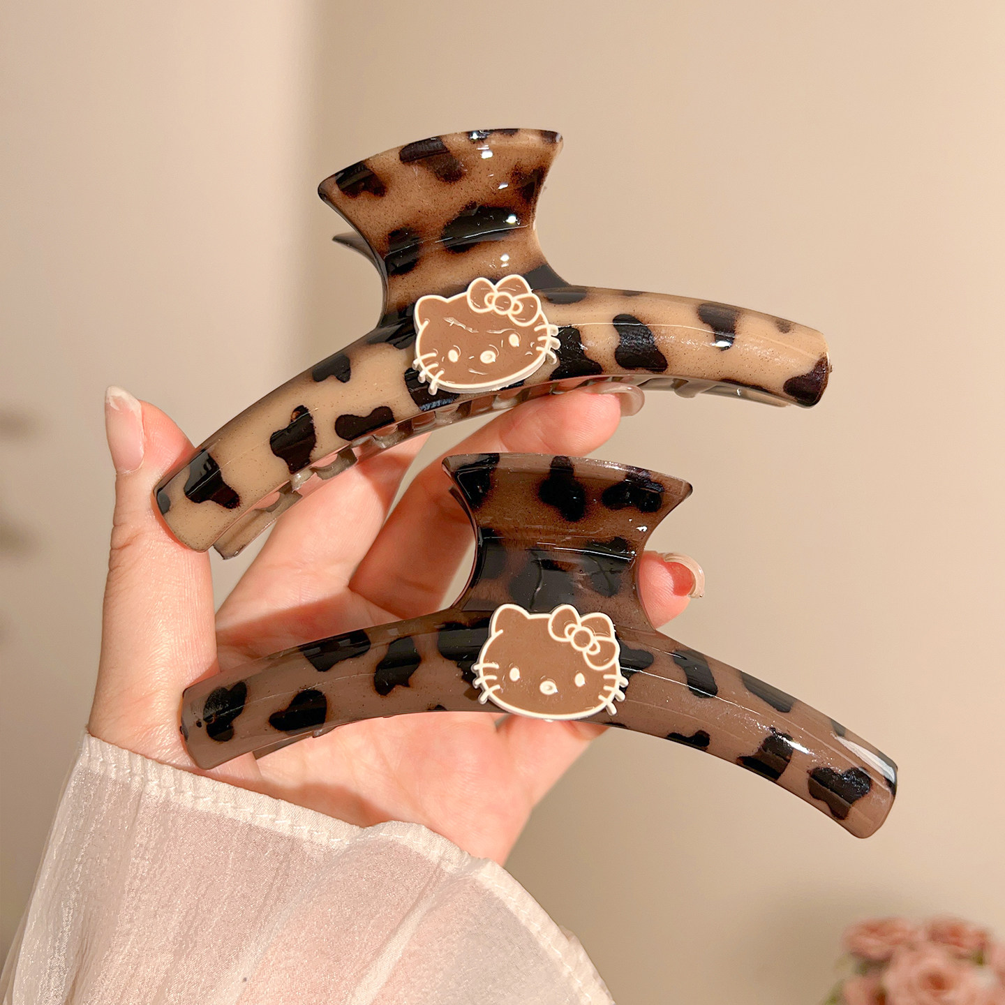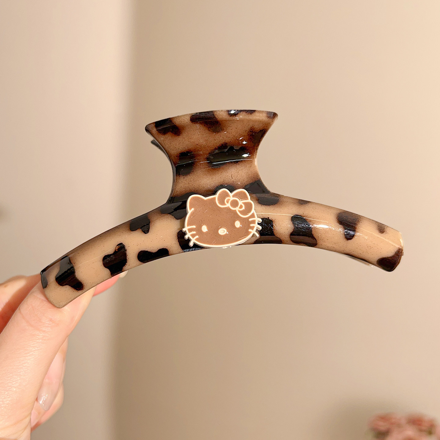 豹纹kitty抓夹女2025新款发量大后脑勺鲨鱼夹子发卡发饰蝴蝶结