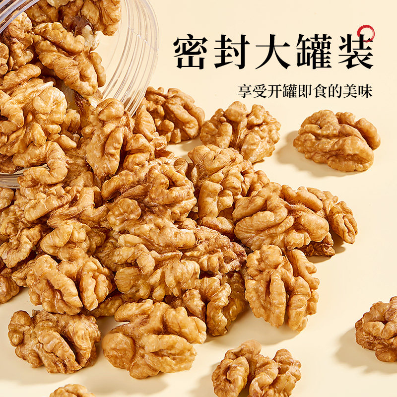 棠品大核桃仁2024年新货500g罐装原味烘焙坚果零食生熟核桃肉年货
