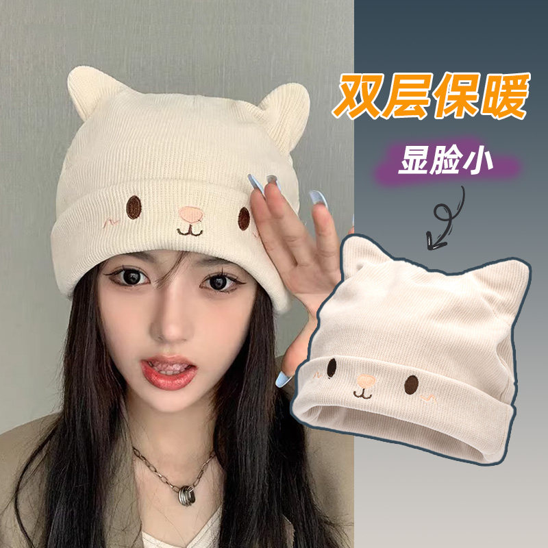 帽子男士秋冬潮毛线帽男款保暖百搭冷帽宽松大头围显脸小针织帽男