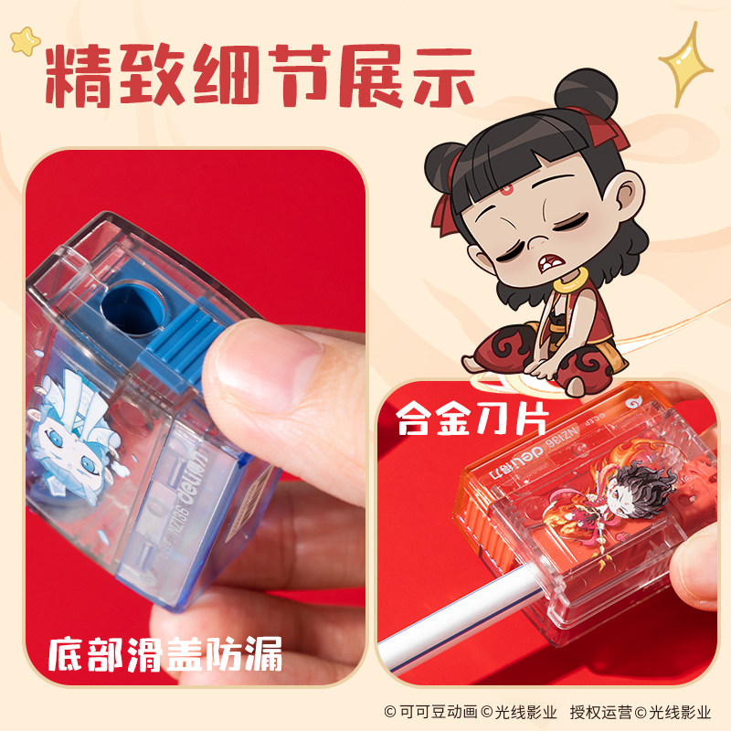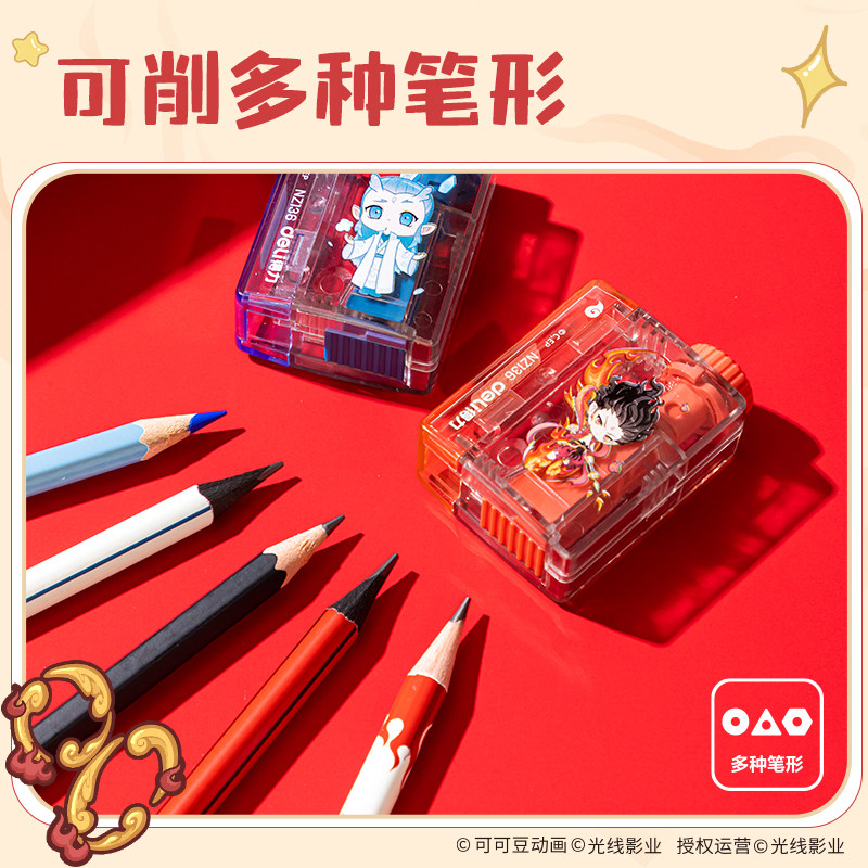 得力哪吒卷笔刀转笔刀削笔刀小学生儿童幼儿园迷你型专用手动刨笔机三角铅笔刀削笔器多功能旋笔刀