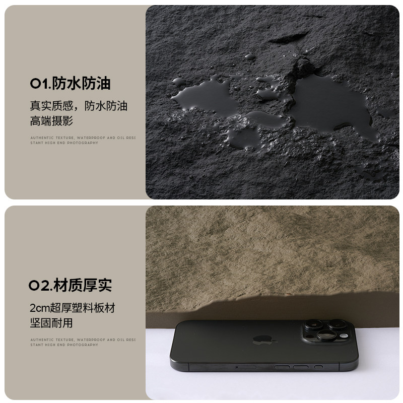 3D立体石纹背景板拍照道具黑色白色灰色美食手表首饰摄影静物拍摄高级感仿真石板背景布桌面场景布置纹理创意