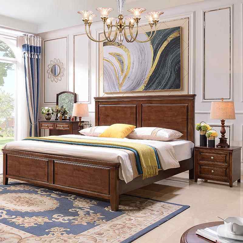 乡村田园风简约美式实木床1.5米单人床主卧大床1.8米双人床
