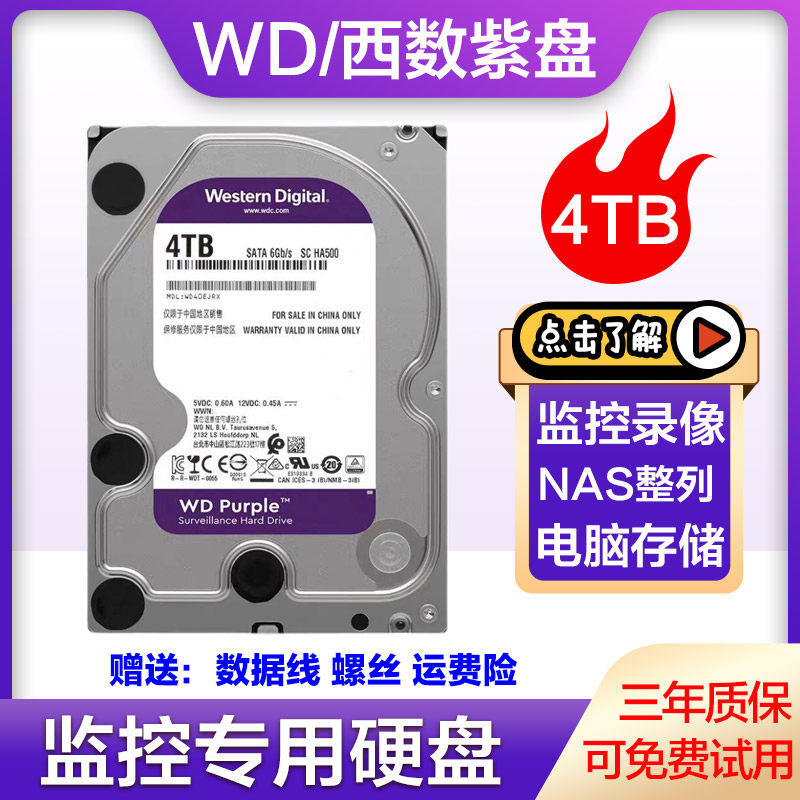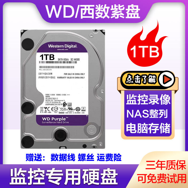 WD西数紫盘1T 2T 3T 4T 6TB机械硬盘台式机监控专用存储电脑通用