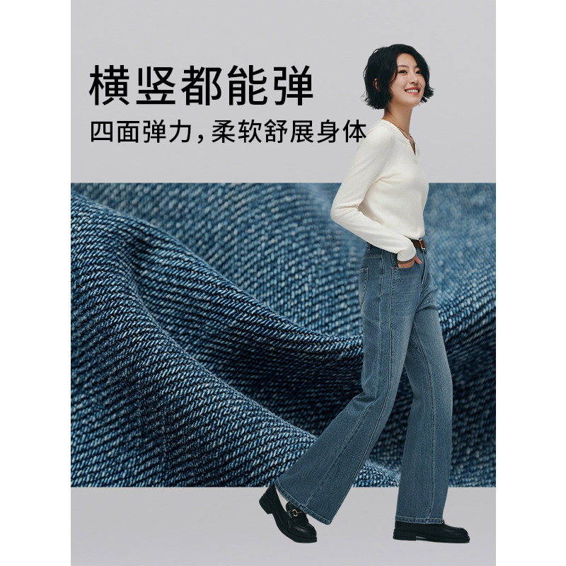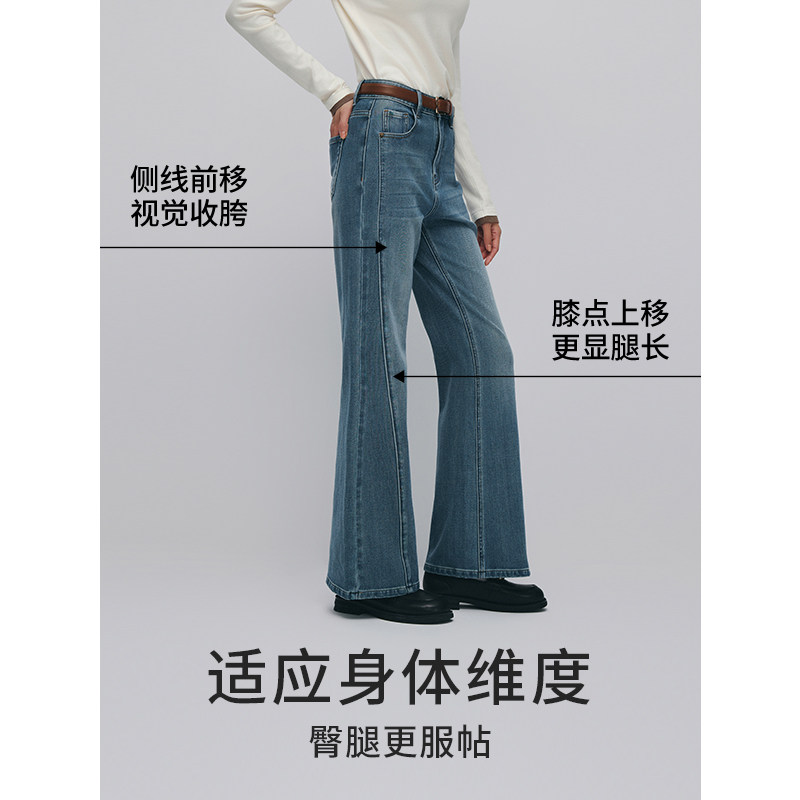 热风女士高腰牛仔裤2025年秋季新款修身微弹喇叭裤复古修饰腿型