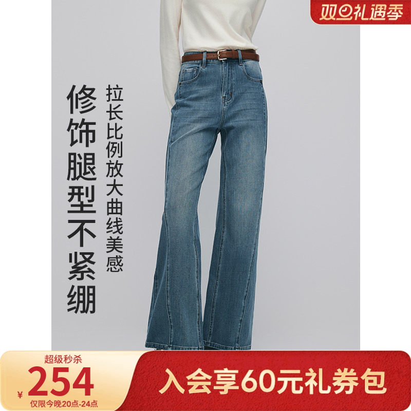 森柔|森马牛仔裤女冬季加绒保暖宽松喇叭裤弹力长裤2025新款港风