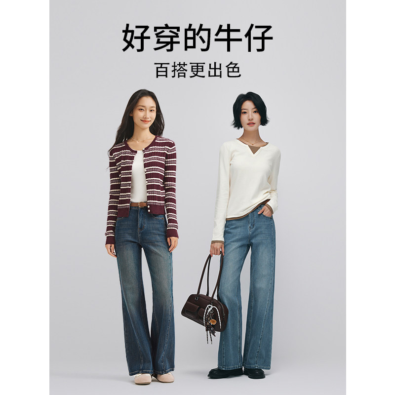 森柔牛仔|商场同款森马牛仔裤女翻边长裤2025秋季新款宽松阔腿裤