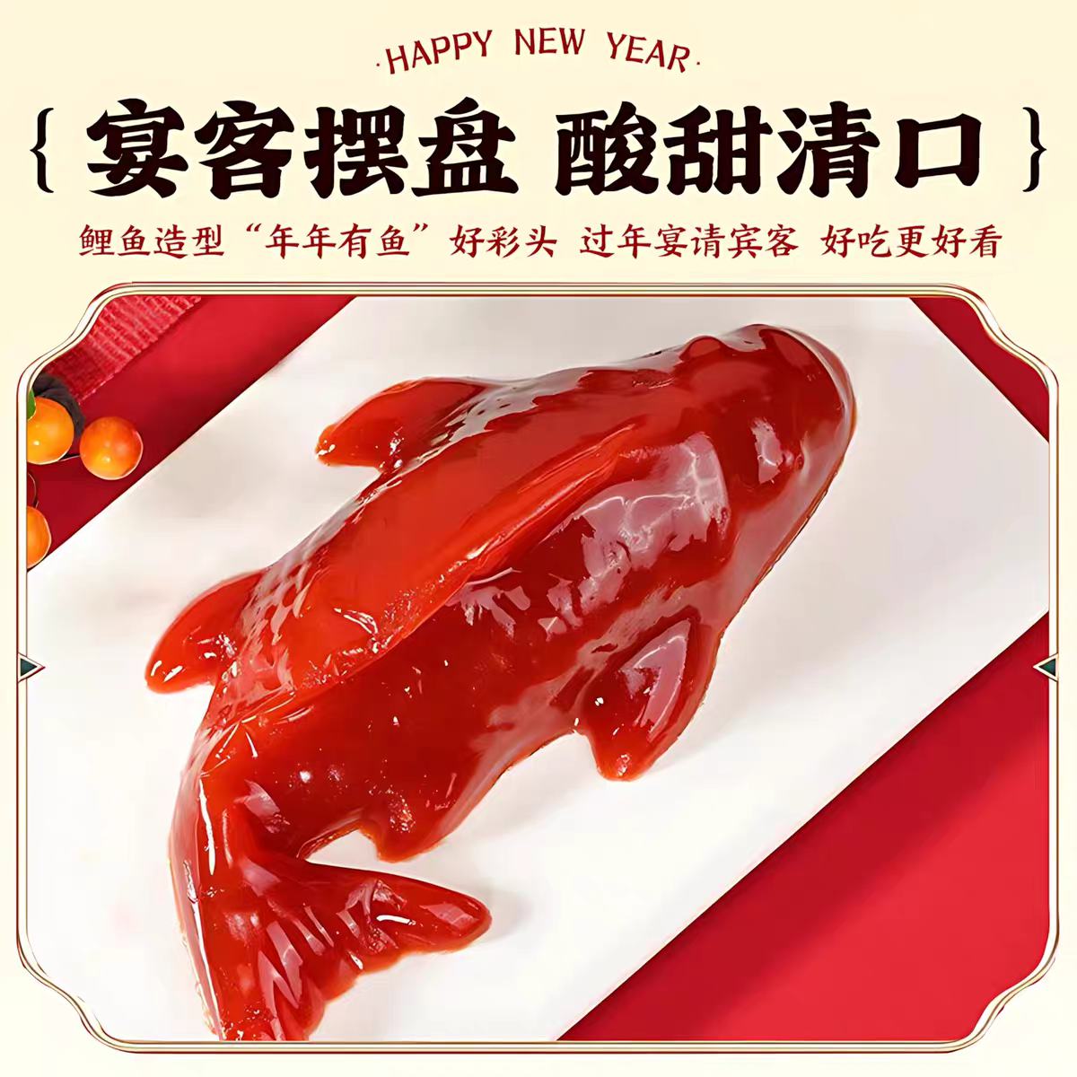 山楂鱼山楂糕八方来财锦鲤年年有余鱼元宝鱼形年夜饭摆盘过年礼盒