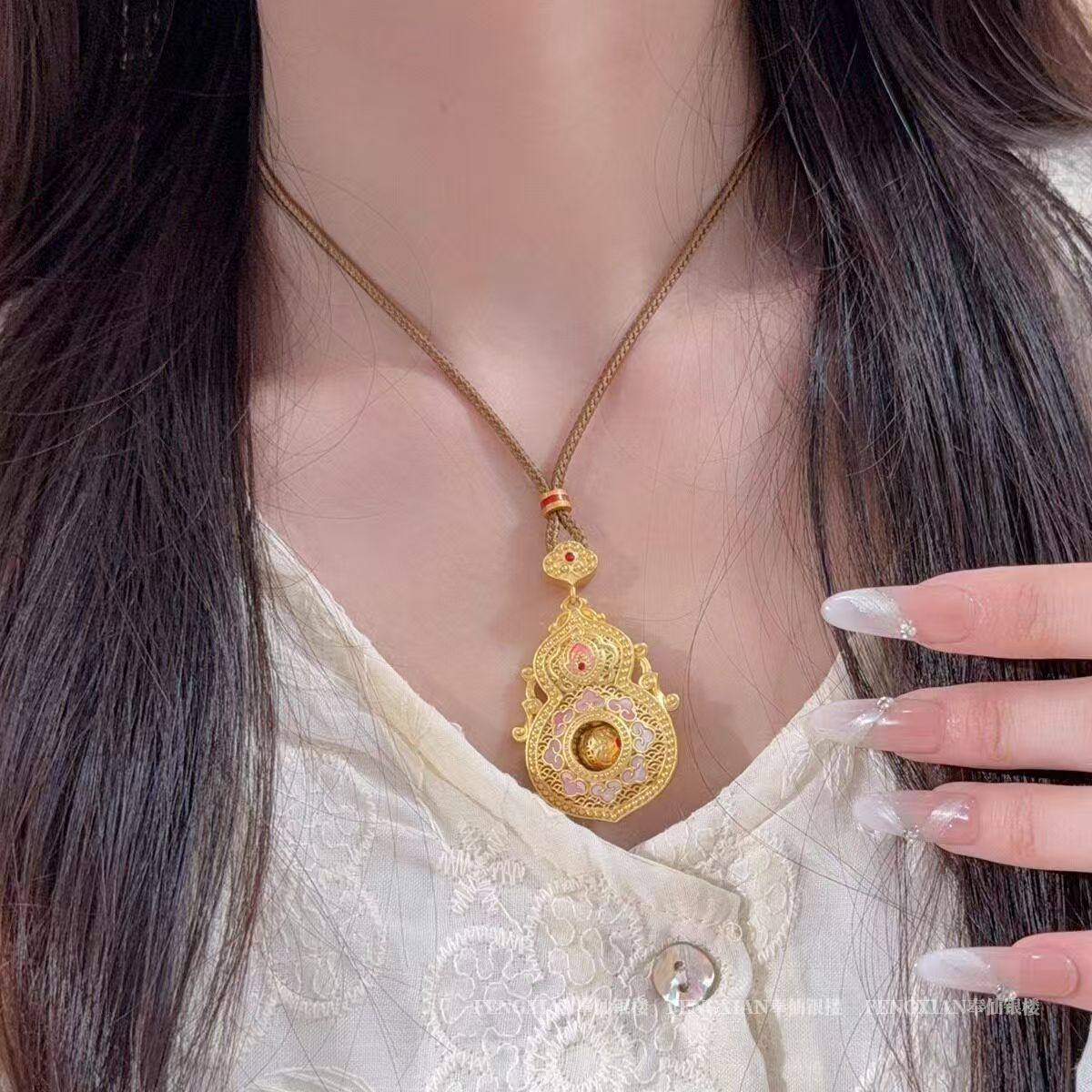 「璃葫」2025新品民族风花丝葫芦吊坠女鎏金毛衣链挂坠国潮风项链