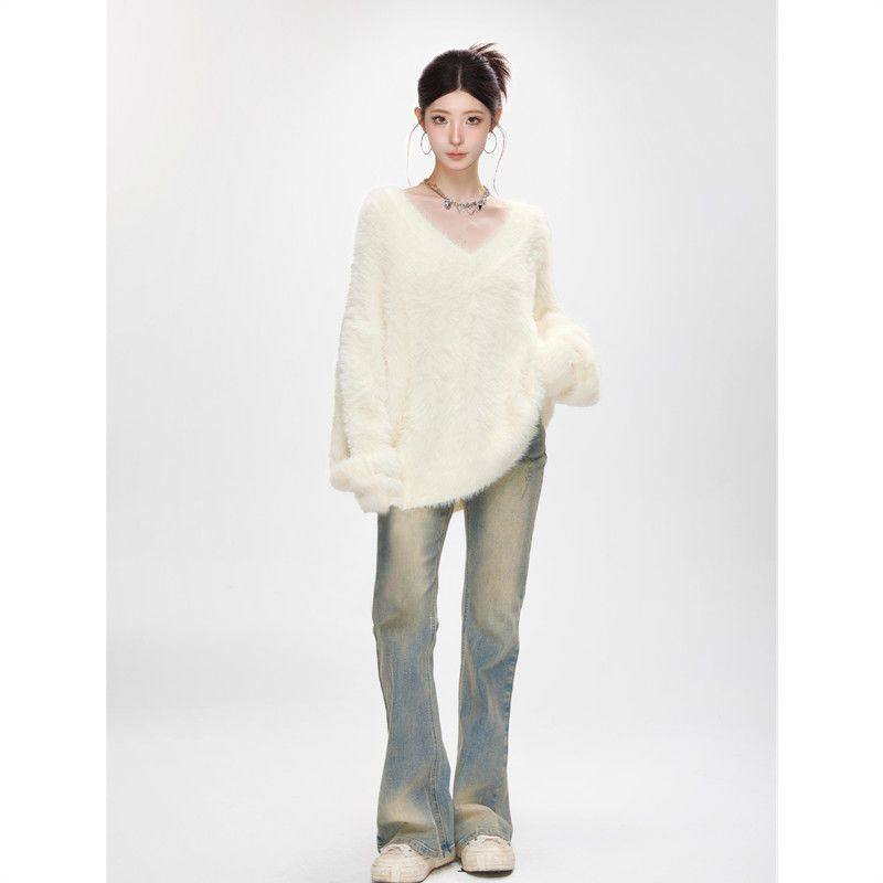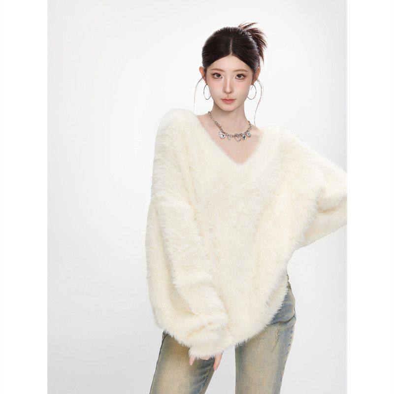 白色水貂绒毛衣女新款上衣加厚宽松慵懒大码内搭针织衫秋冬套头