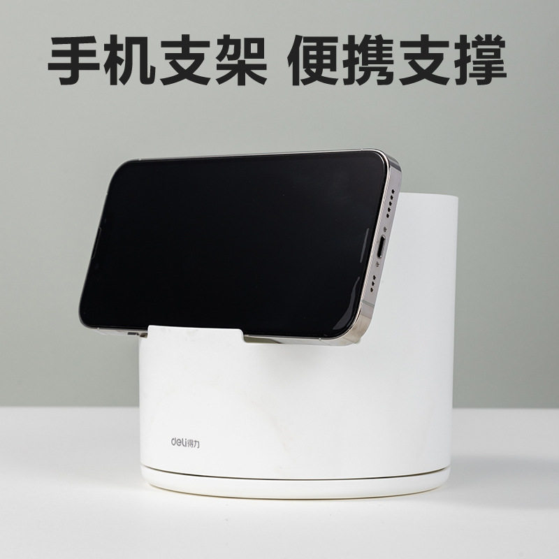 笔筒2026热卖Deli/得力360度旋转笔筒学生书桌大容量笔桶笔架多功