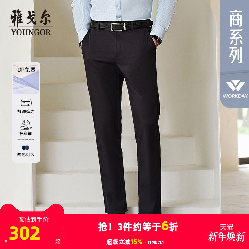 【免烫宾霸】雅戈尔秋季男士抗皱休闲裤高级职业大码直筒弹力裤子