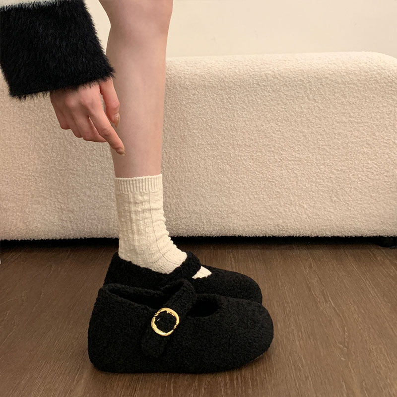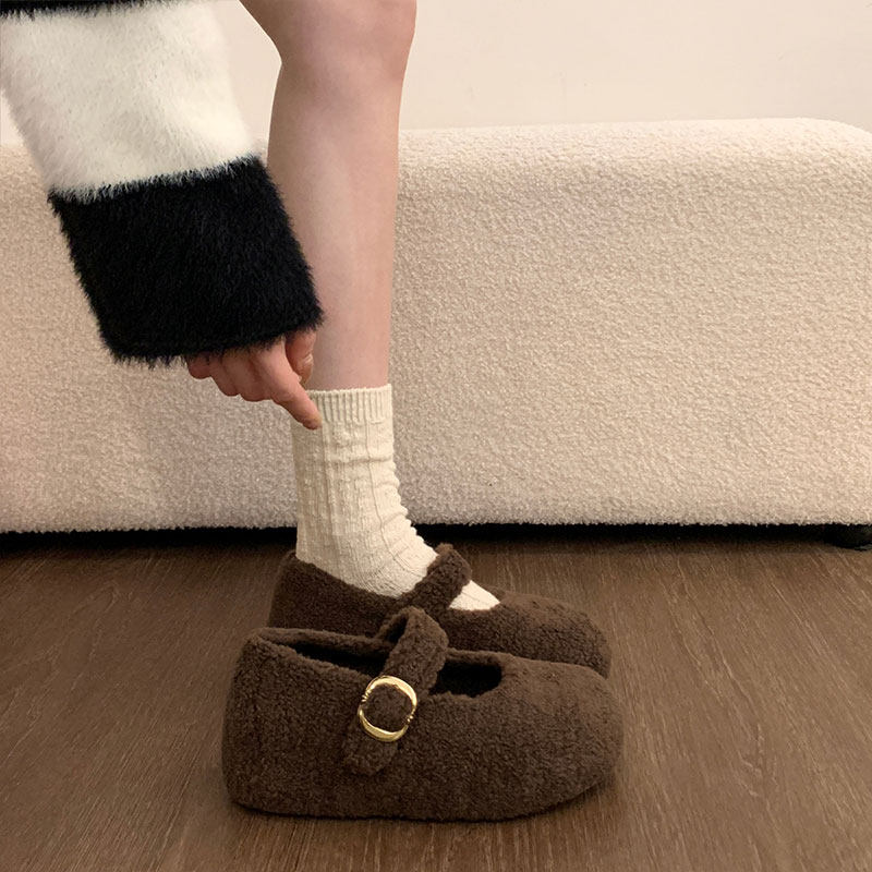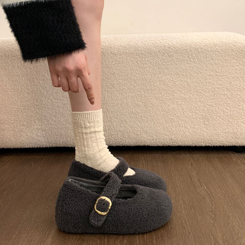 厚底内增高白色玛丽珍毛毛鞋女2025新款冬季毛绒勃肯鞋棉鞋雪地