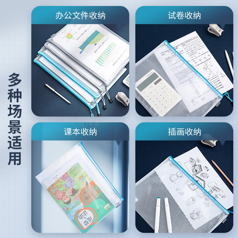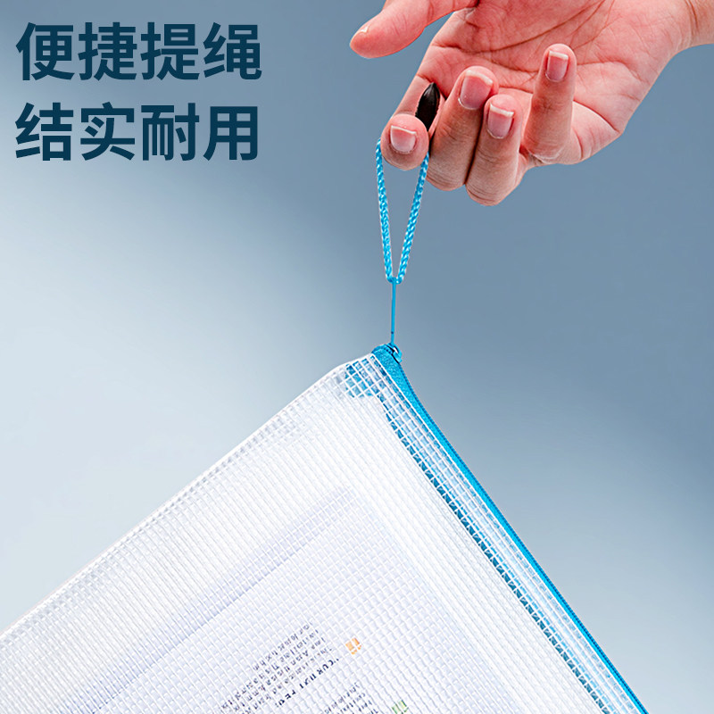 网格文件袋加厚透明网格拉链袋A4试卷收纳袋学生用考试文具袋防水笔袋办公用品批发公文档案袋资料袋包邮