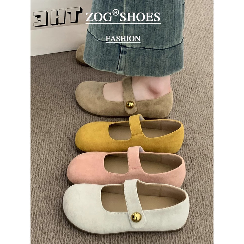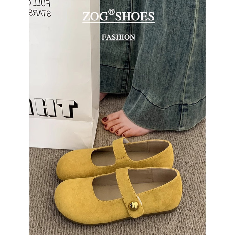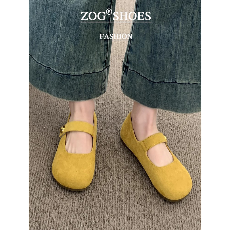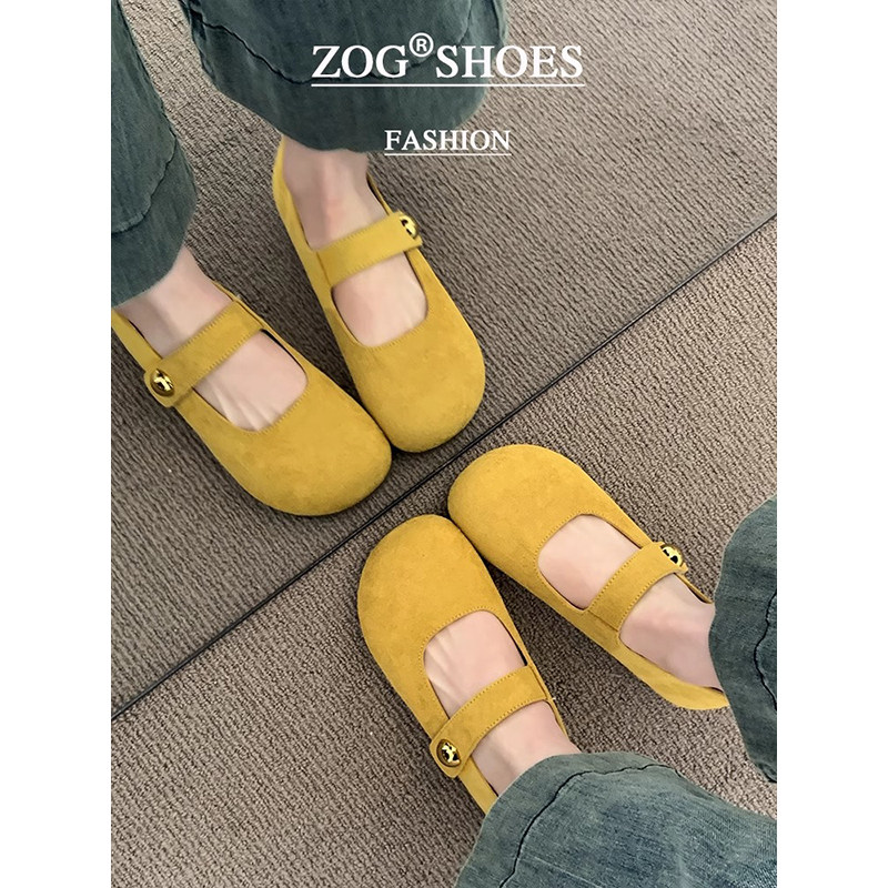 黄色勃肯鞋女2025新款春秋季单鞋平底玛丽珍女鞋子复古豆豆鞋浅口