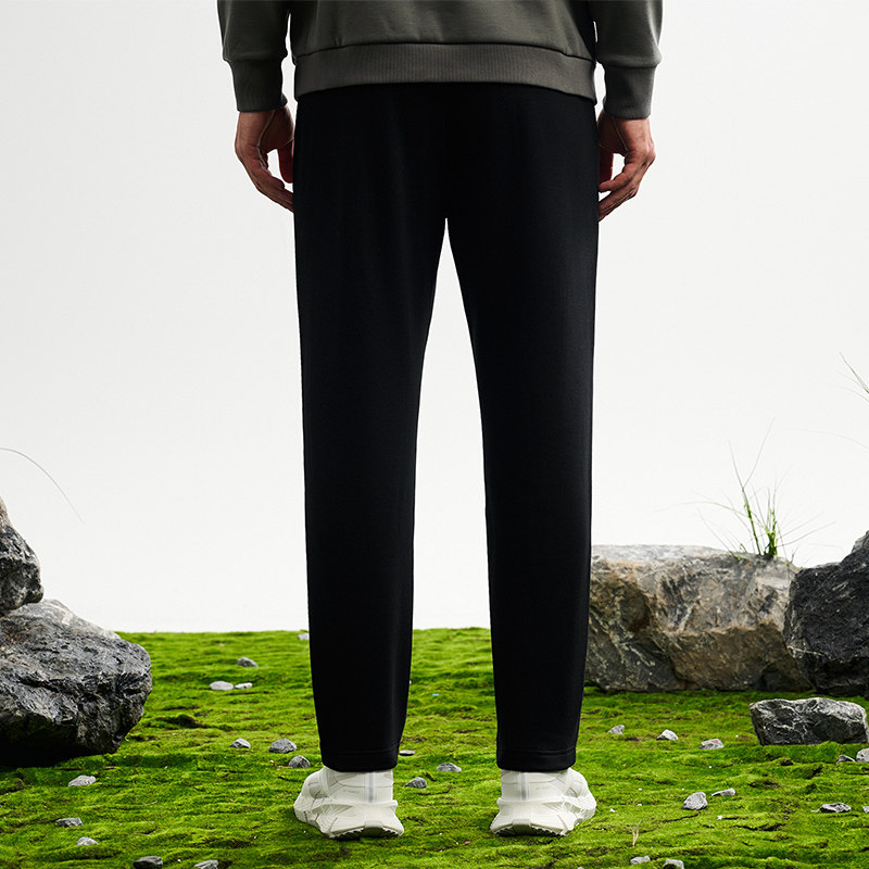 准者直筒宽松运动长裤秋冬新款男士休闲跑步篮球黑色针织加绒卫裤