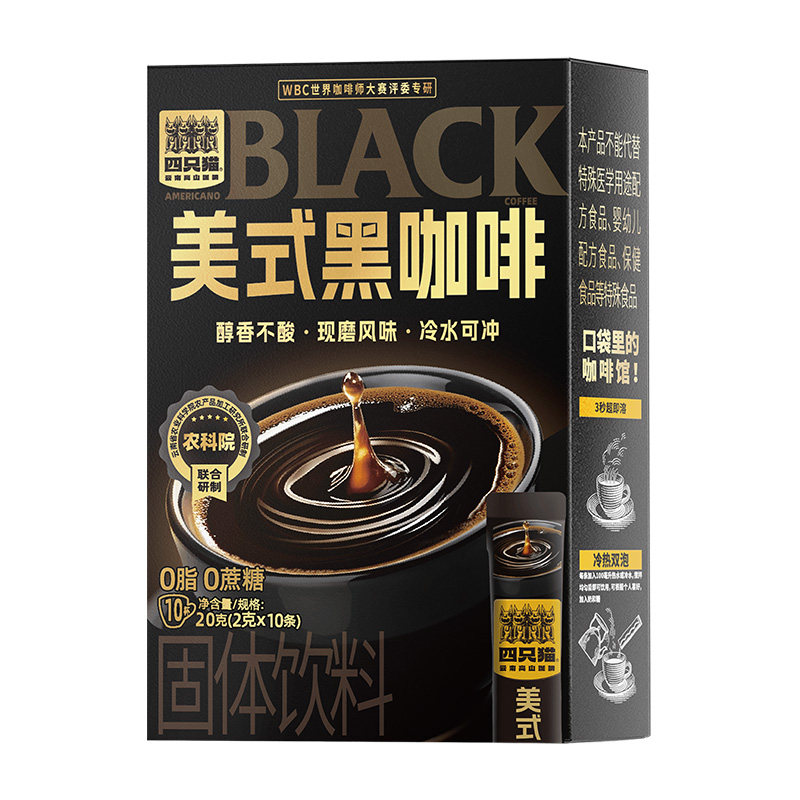 四只猫00脂肪云南小粒速溶美式健身提神燃减黑咖啡粉饮料健康固体