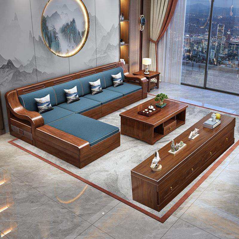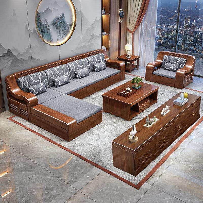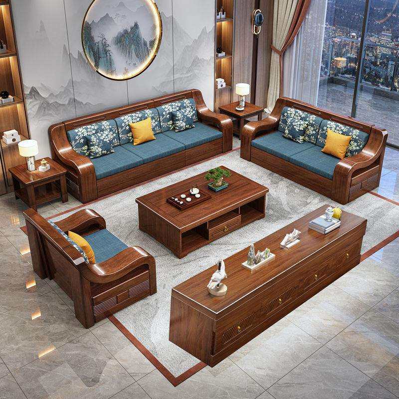 新款胡桃木实木沙发茶几电视柜组合客厅冬夏两用大小户型储物家具