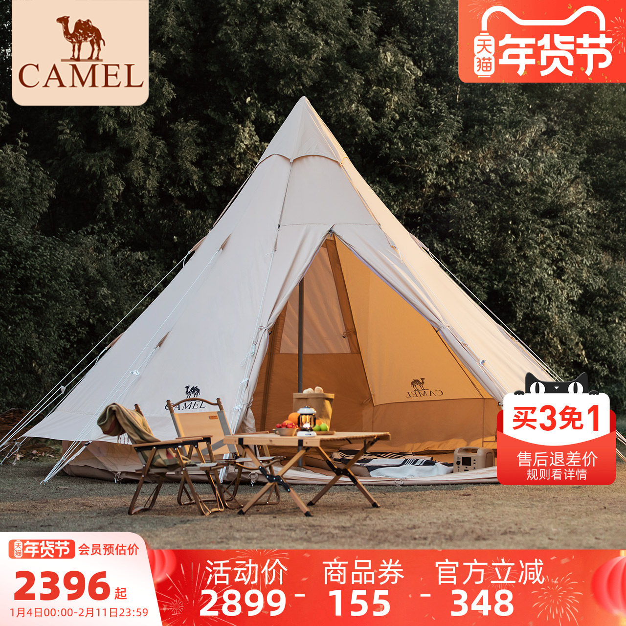 【清仓】【漠】骆驼户外精致露营便携式折叠金字塔加厚大空间帐篷