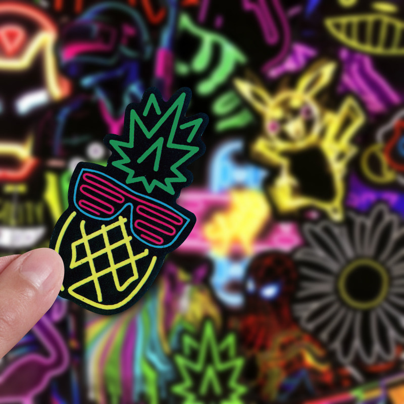50张ins风霓虹灯蒸汽波贴纸原宿复古行李箱手机头盔贴画防水装饰