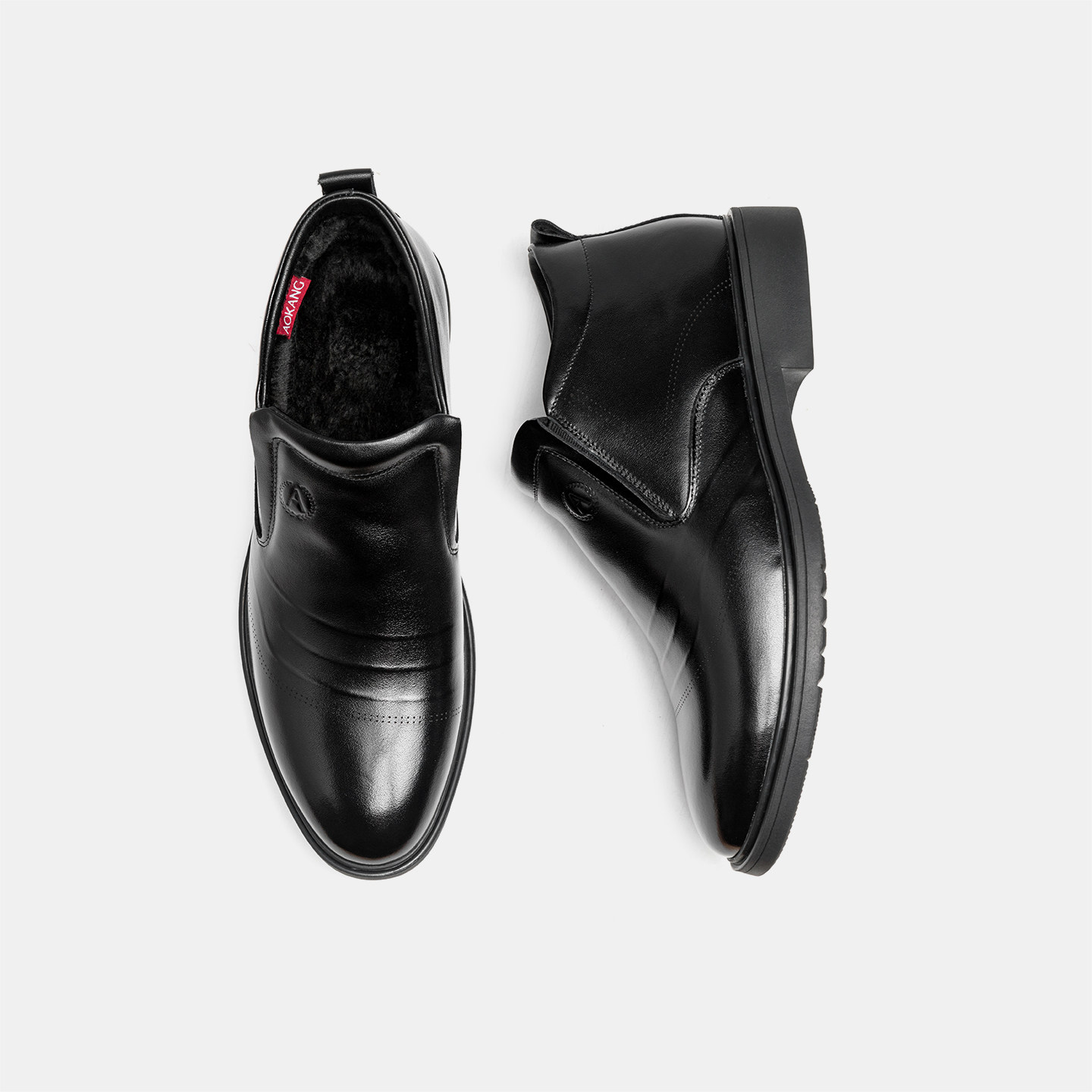 奥康 男鞋2025冬季新款乐福商务正装厚底增高中帮加绒保暖豆豆鞋