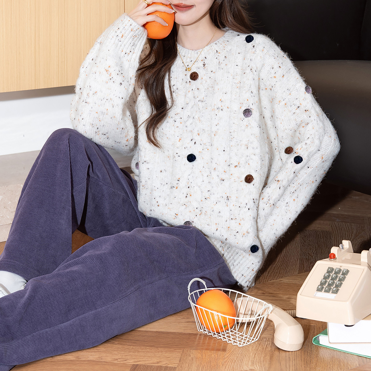 唐狮秋冬季毛衣女新型纱线立体球设计感圆领套头温柔风甜美系TU