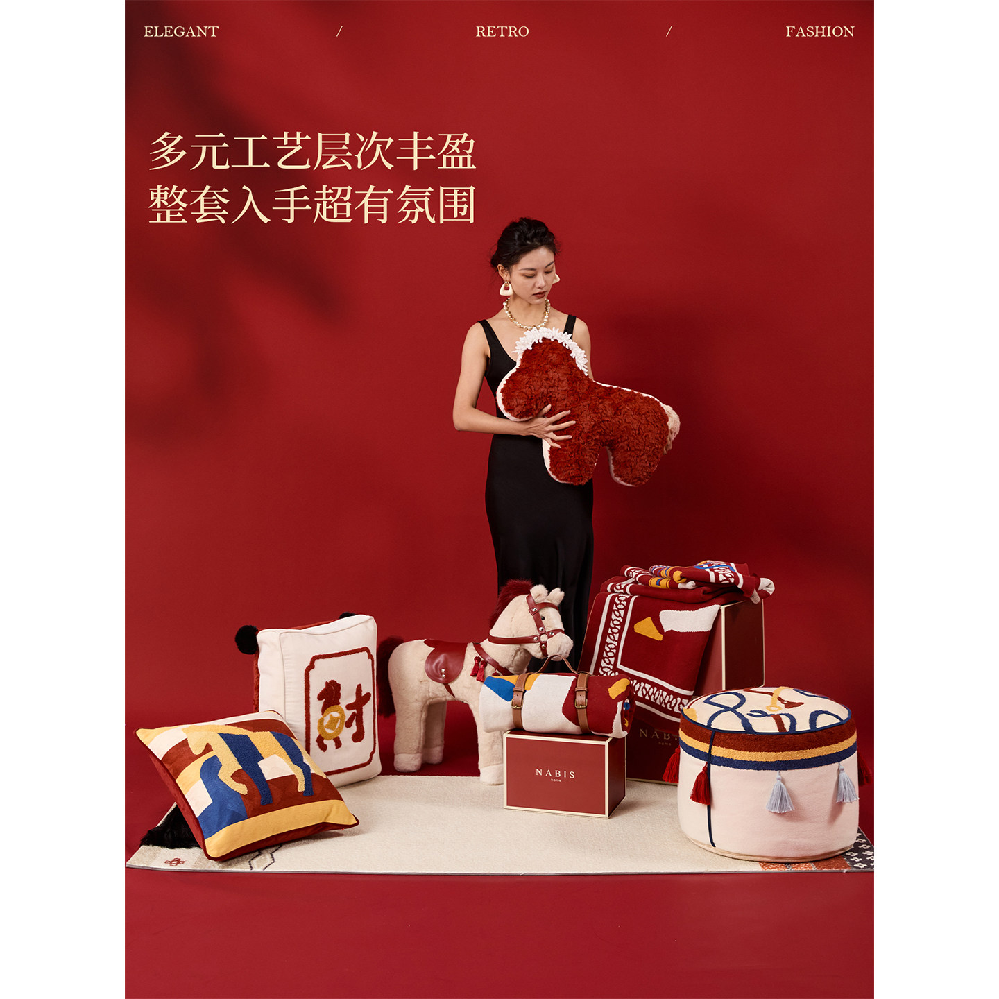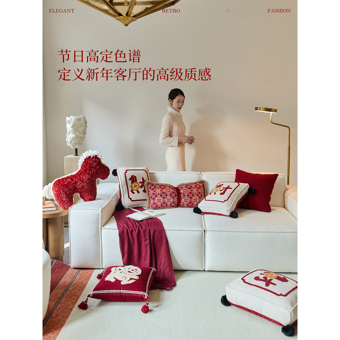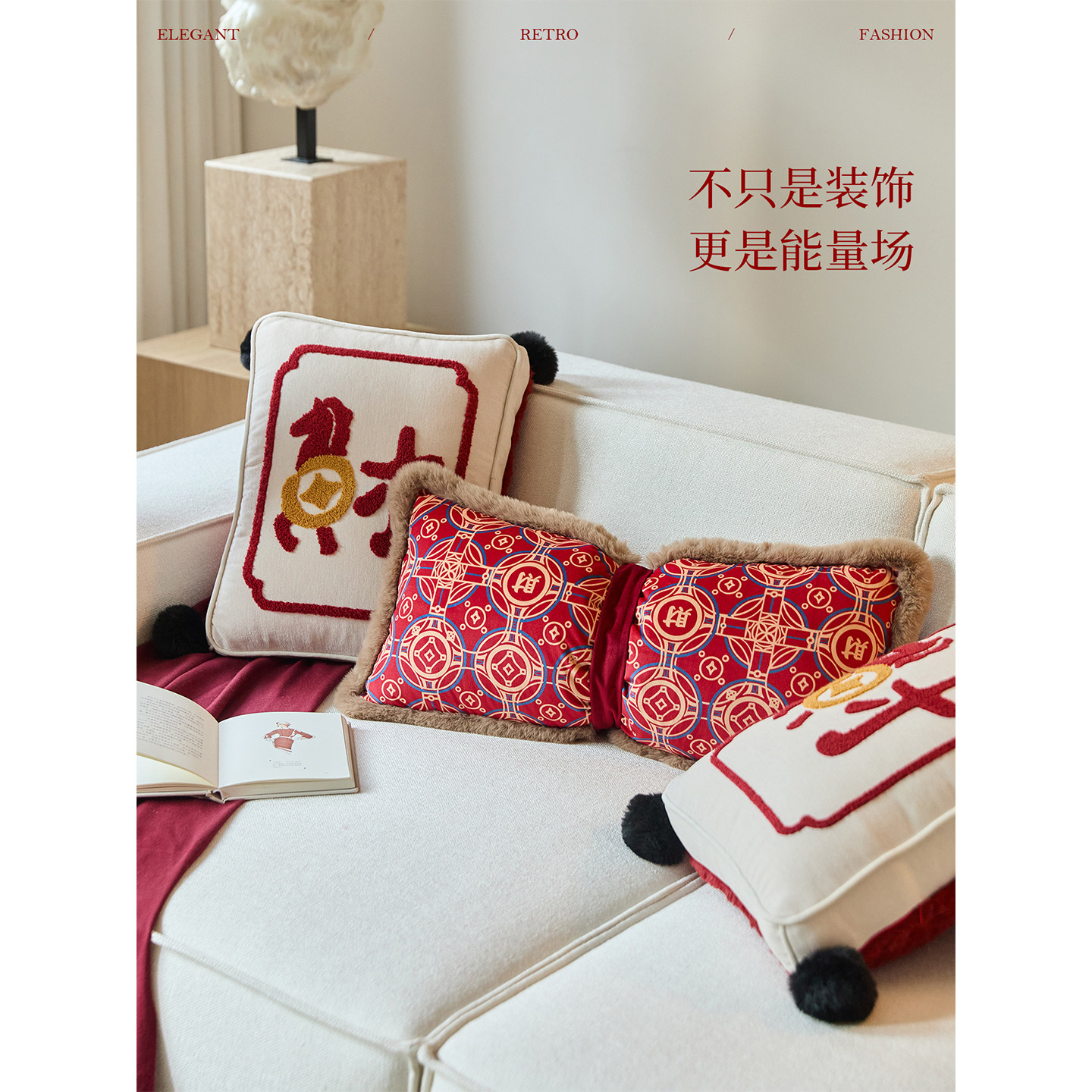 现代轻奢新年红色客厅沙发靠垫新款