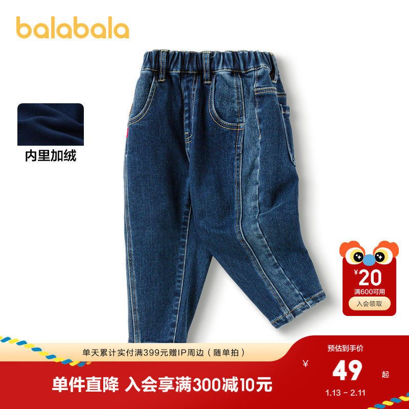 巴拉巴拉童装儿童裤子宽松男童牛仔裤秋冬宝宝松紧腰长裤时尚百搭