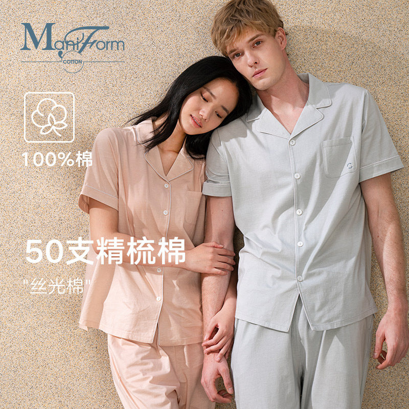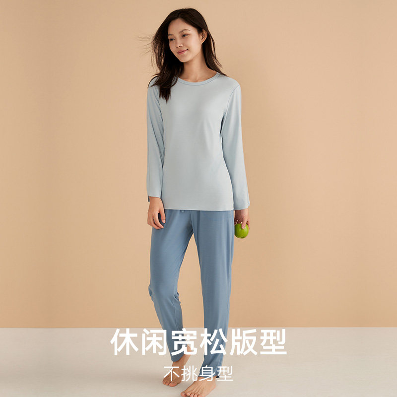 安比斯情侣睡衣舒适纯棉秋季女长袖男女同款休闲家居服套装可出门
