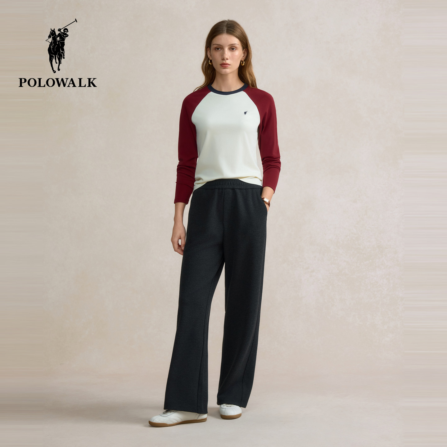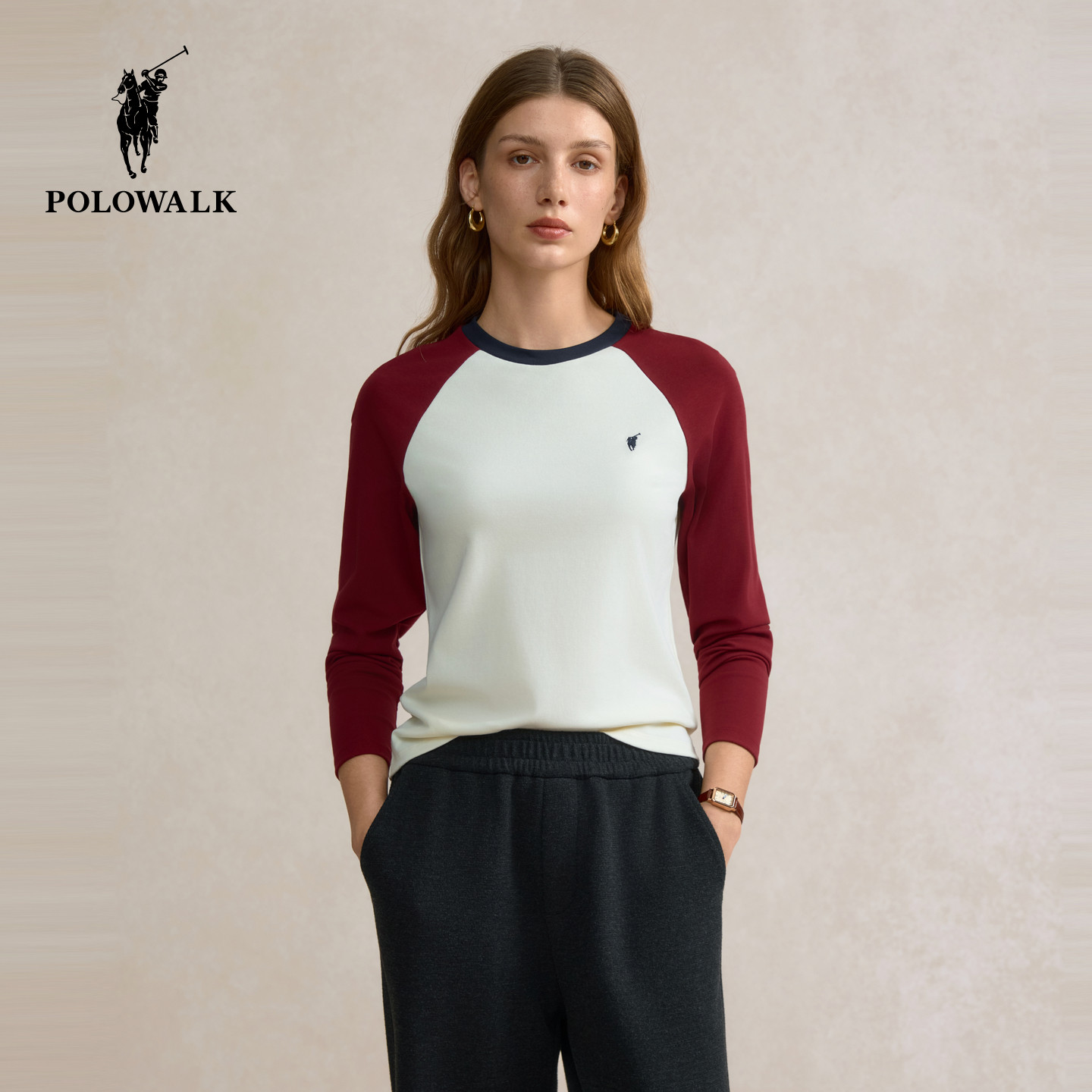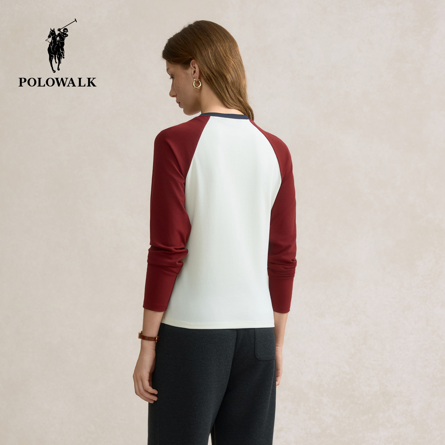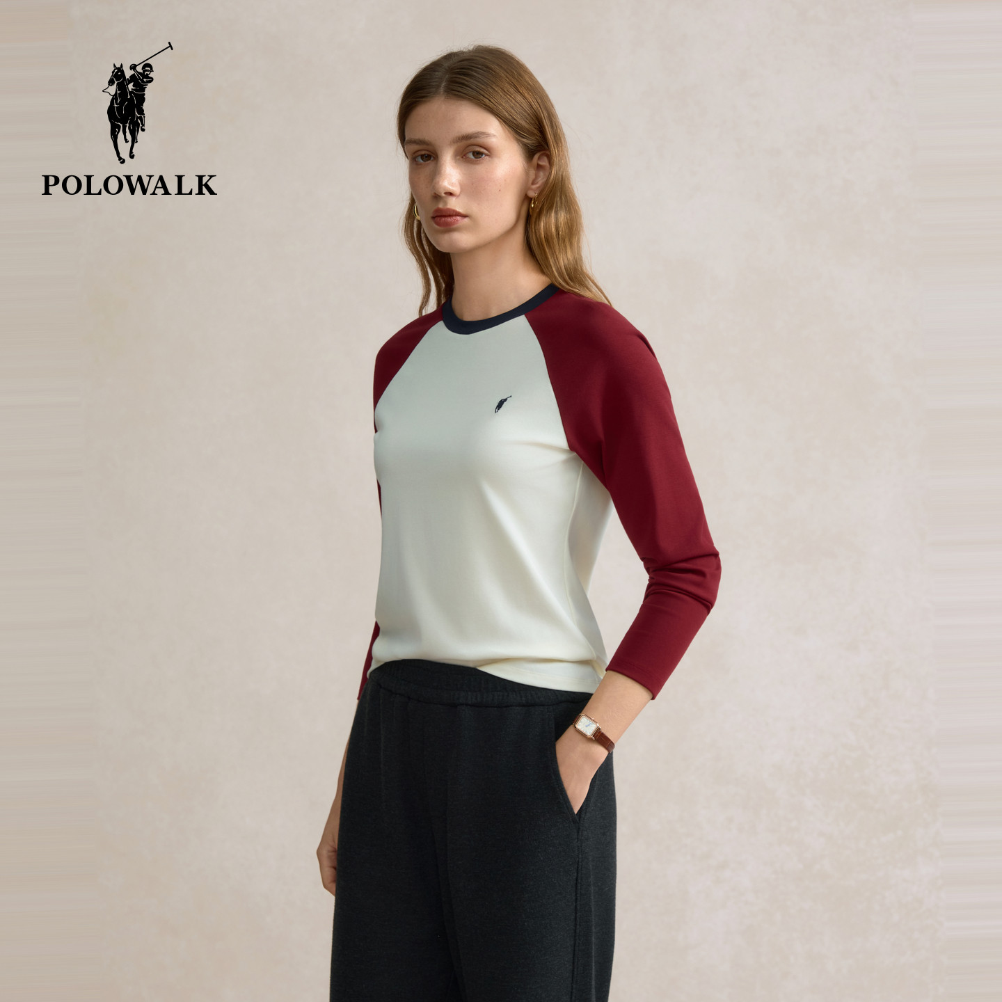 POLOWALK长袖T恤女式2025秋冬新品撞色打底内搭时尚宽松百搭上衣