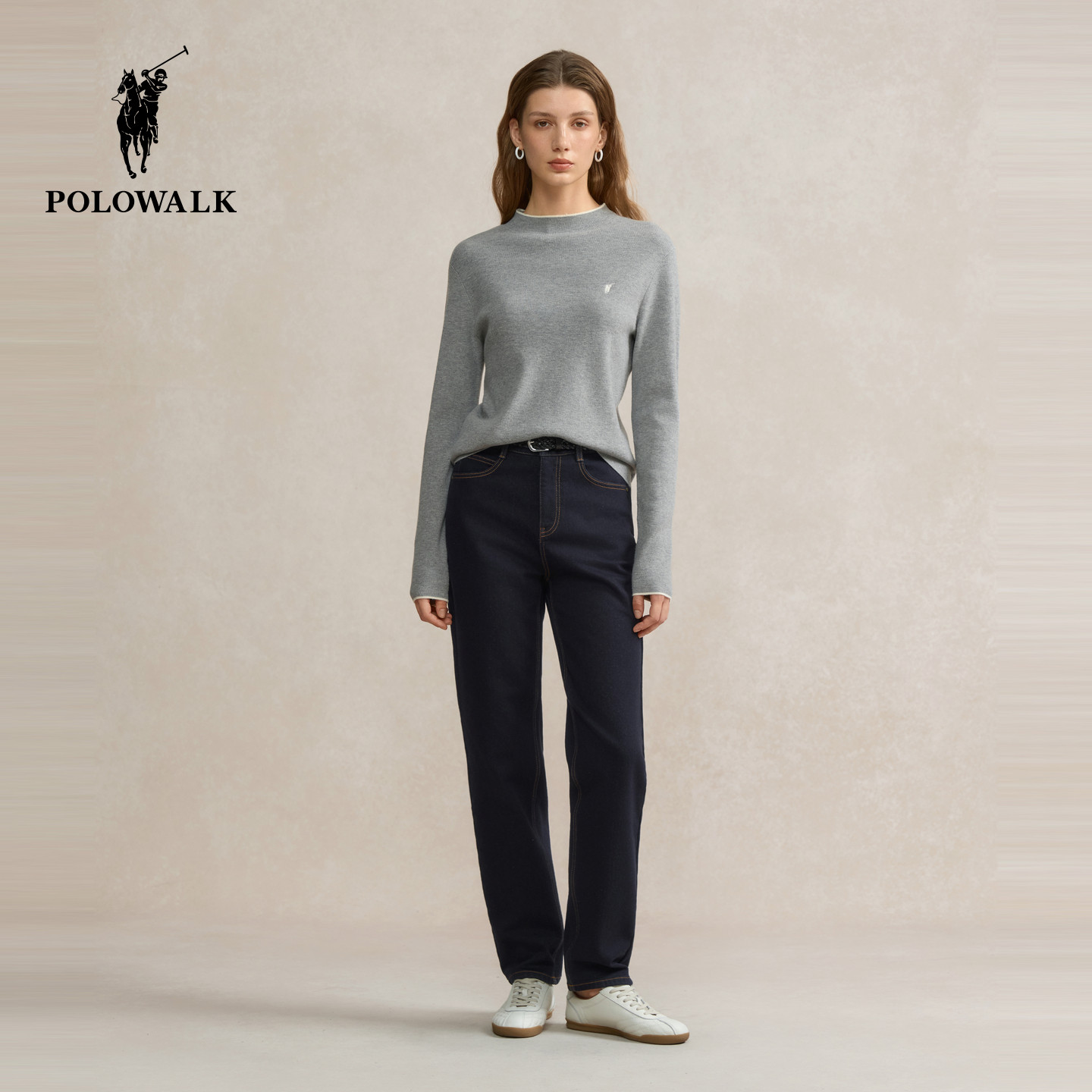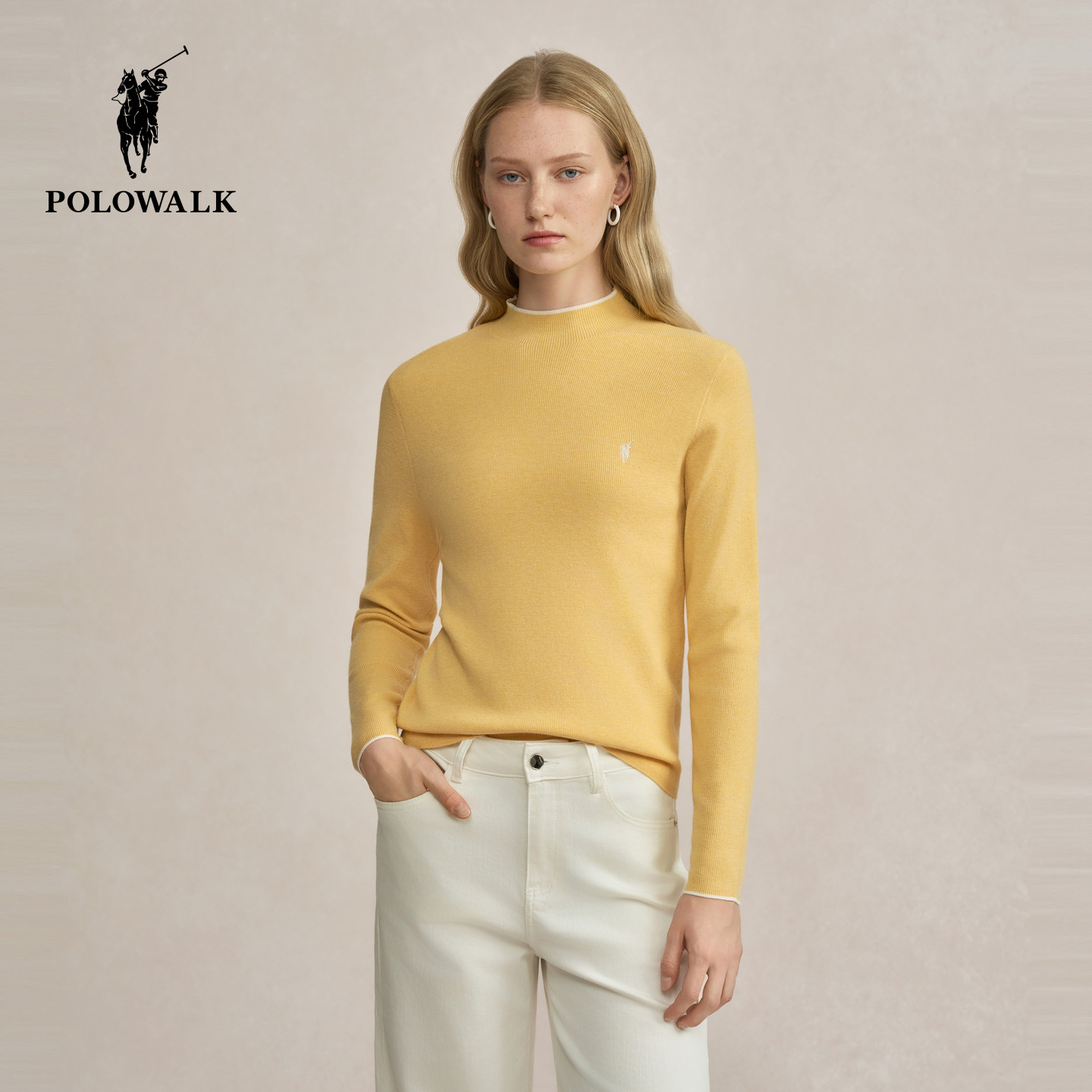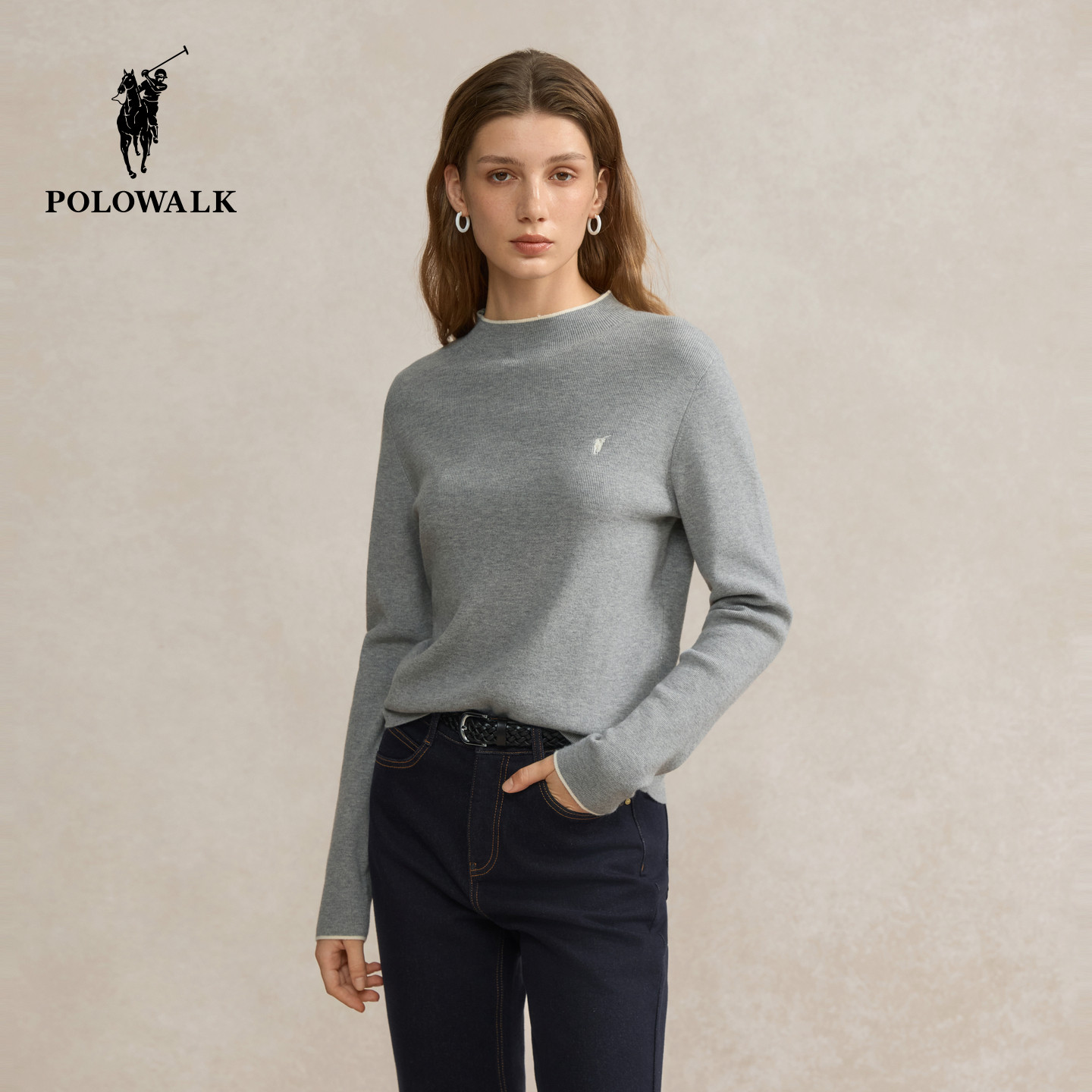 POLOWALK半高领针织衫女士秋冬新款套头毛衣百搭经典款内搭打底衫