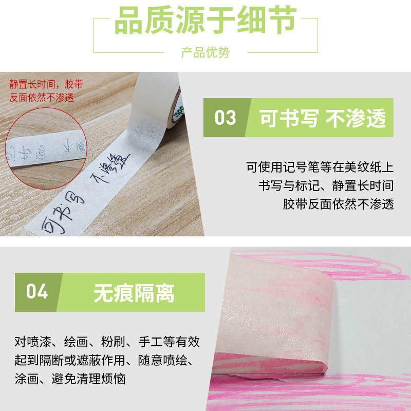 美纹纸胶带定制高粘手撕书写胶纸喷漆家装耐高温纸胶带装修美纹纸