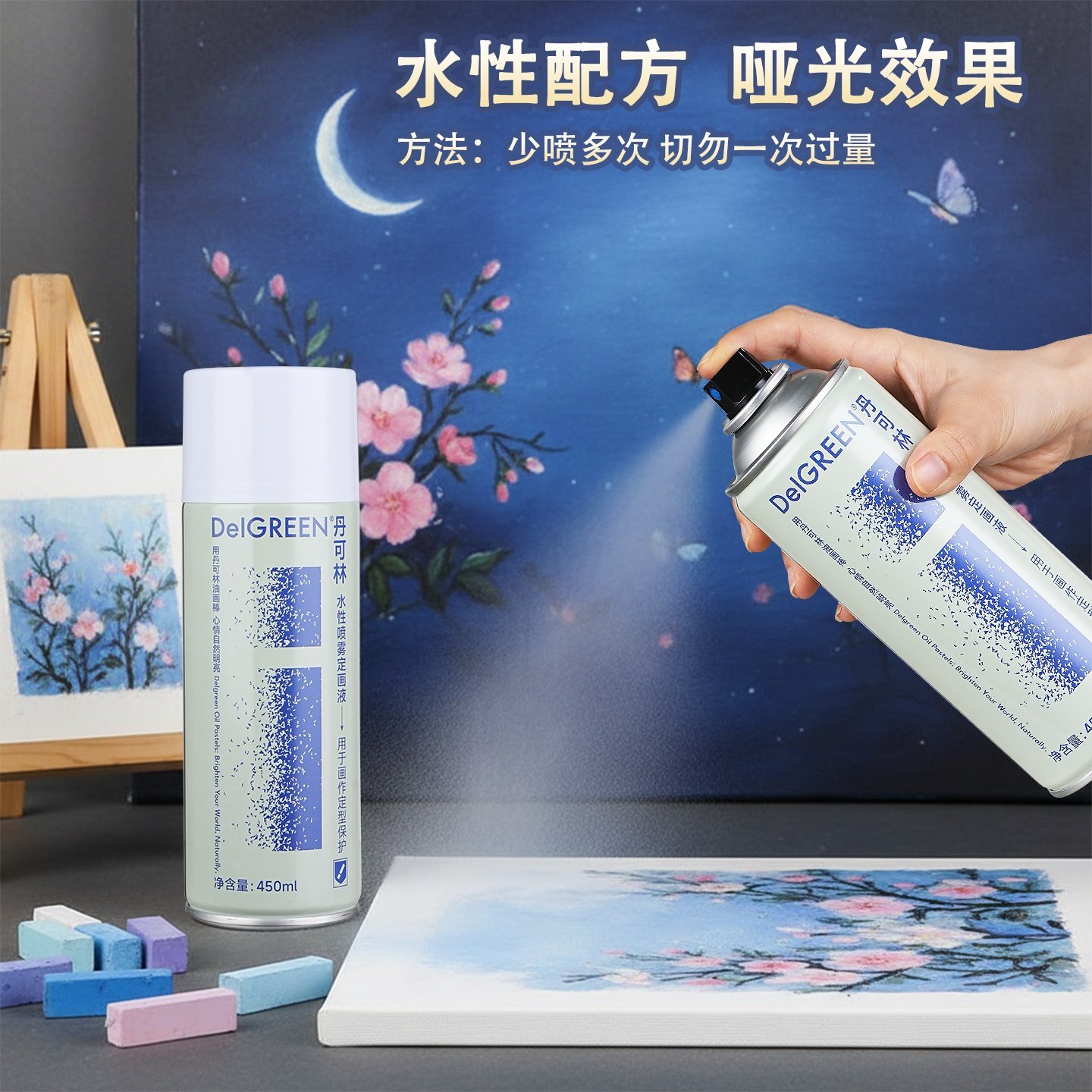 丹可林加量450ml哑光水性喷雾定画液油画棒尼泊尔手工本水彩丙烯马克笔专用定型小瓶水粉彩铅蜡笔固定固色剂