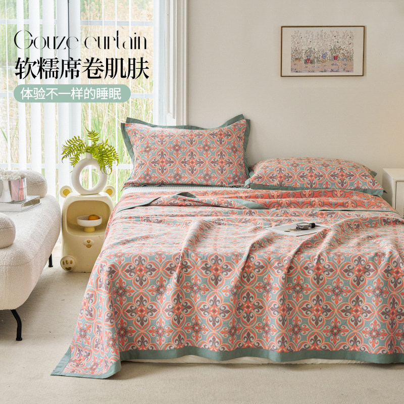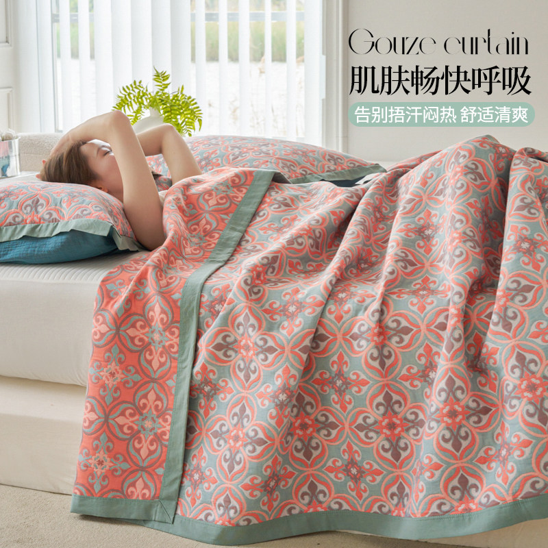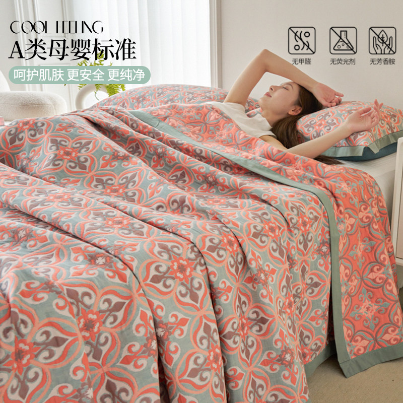 如奕全棉双层纱夏被纯棉可机洗夏季薄款亲肤凉感纱布毛巾被沙发毯