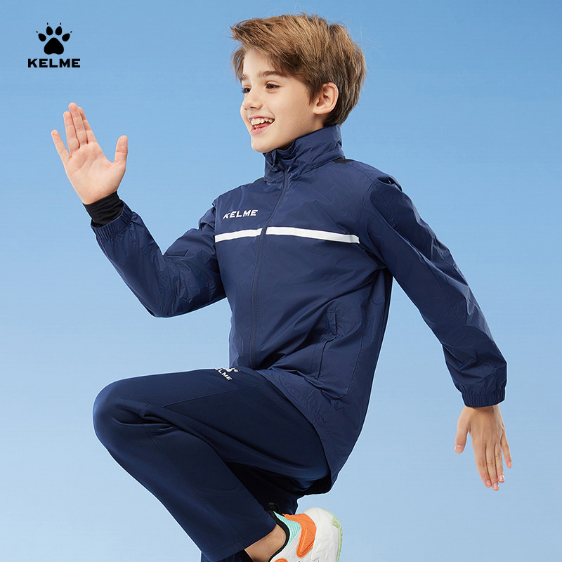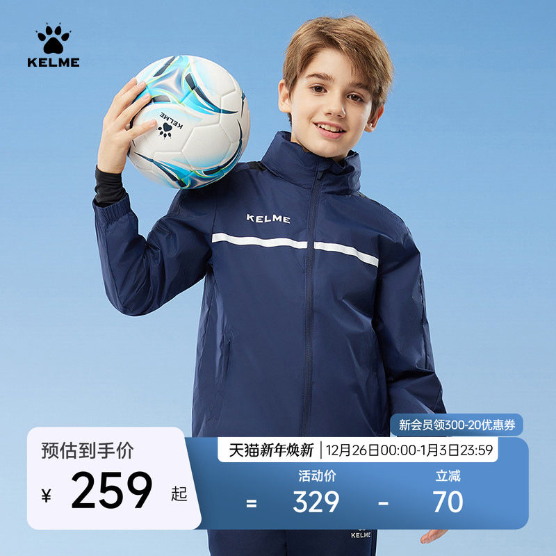 KELME卡尔美儿童风衣梭织外套2025秋季风雨衣训练连帽开衫运动服