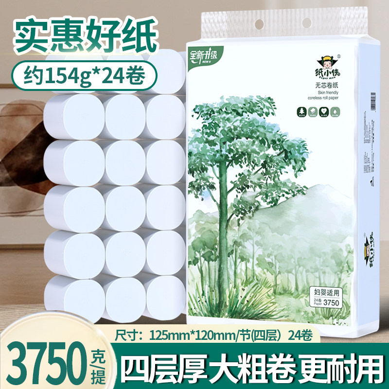 维达细韧无芯卷纸4层家庭厕纸学生宿舍手纸卫生纸巾实惠实心24卷