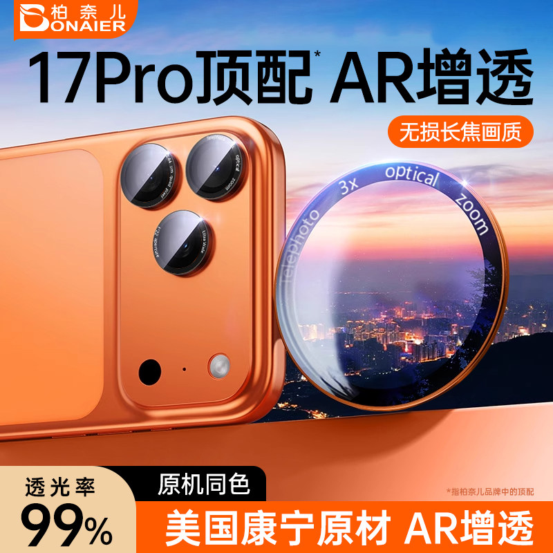 【AR抗反射超薄康宁】柏奈儿适用适用苹果17promax高清镜头膜半包不顶壳iPhone17pro保护pm系列手机摄像头贴