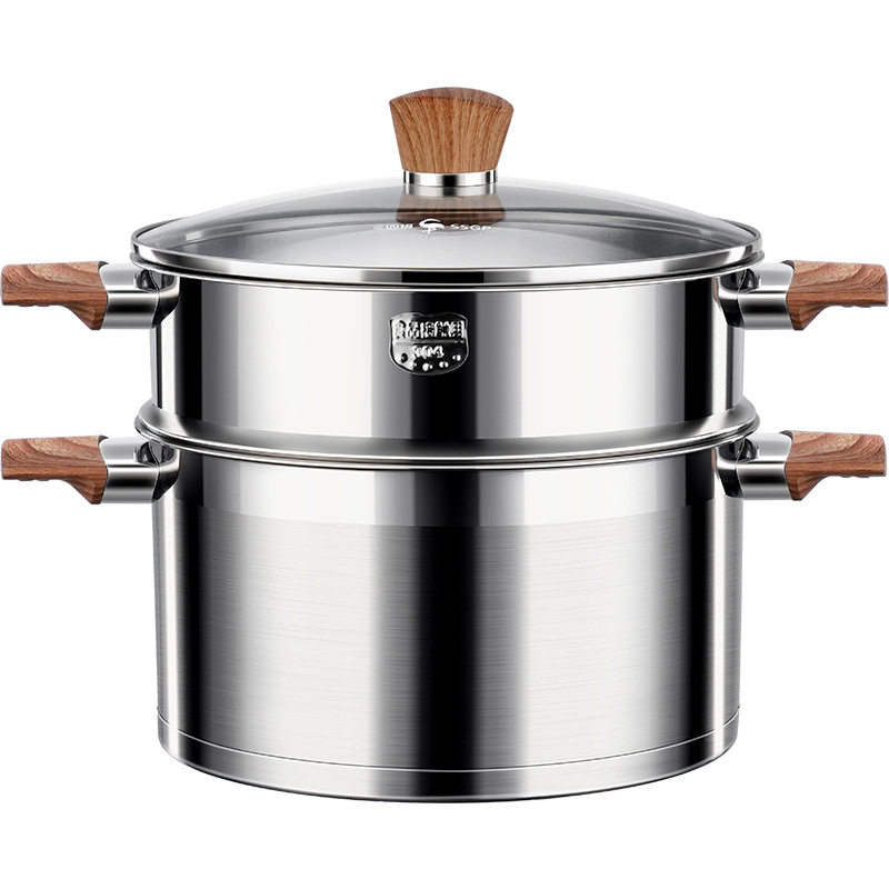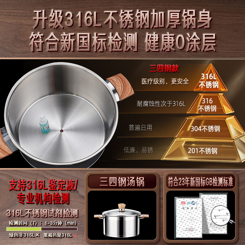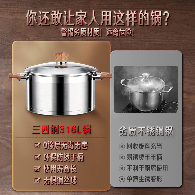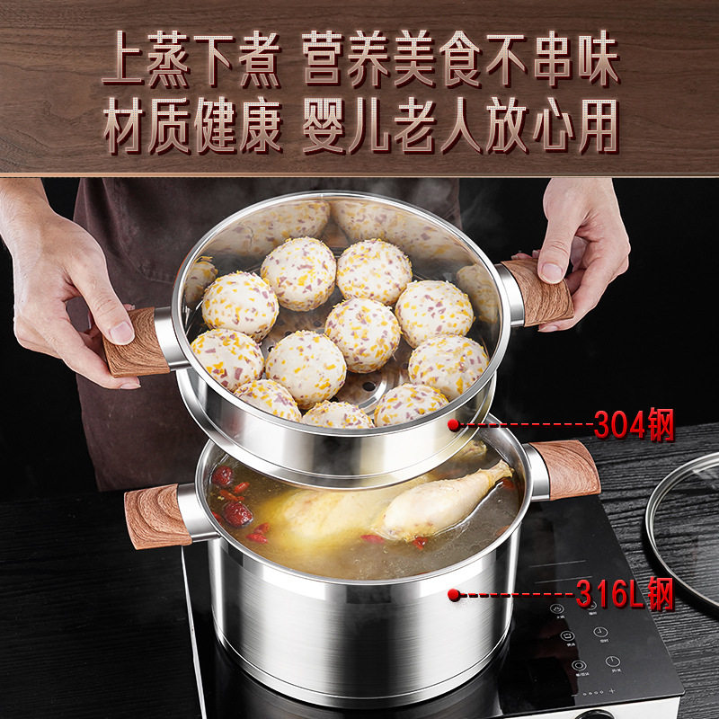 三四钢316L不锈钢双耳汤锅食品级蒸煮一体小蒸锅加厚三层钢家用锅