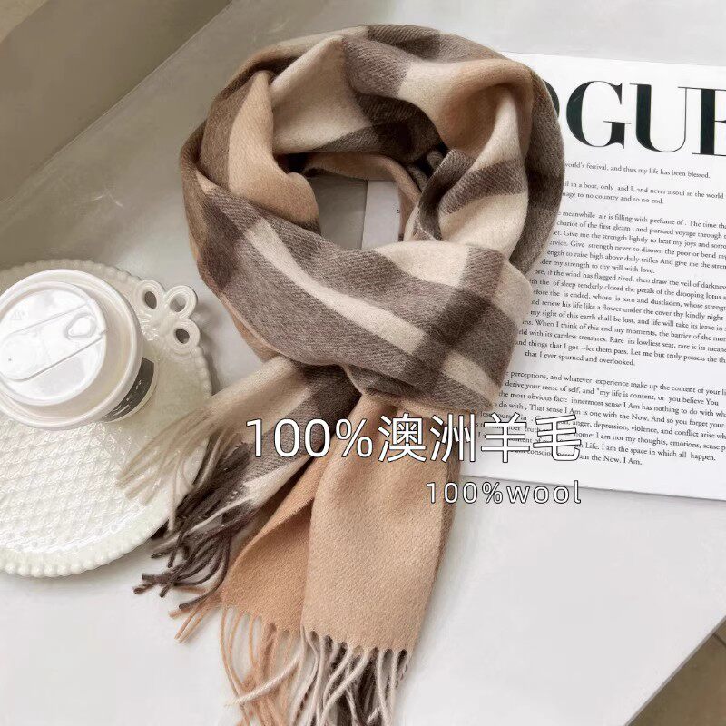 精选澳洲wool纯羊毛格纹围巾英伦经典男女通用情侣款冬季保暖围脖