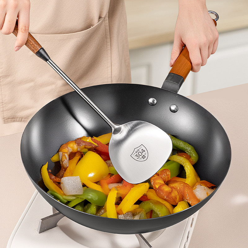 304不锈钢锅铲家用胡桃木柄把食品级汤勺子厨房厨具套装炒菜铲子