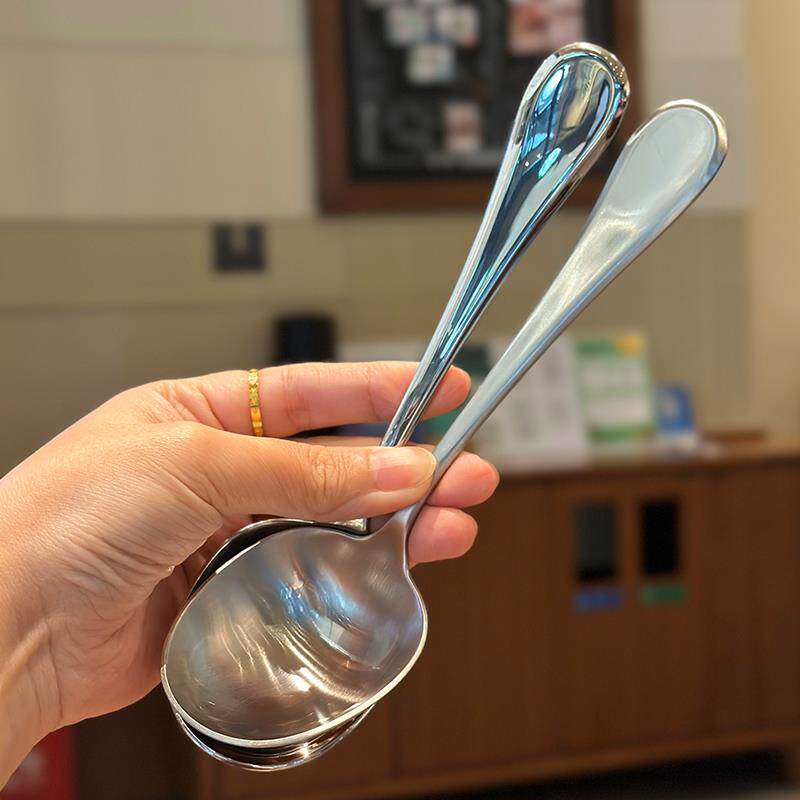 高级质感!1810不锈钢大口喝汤干饭勺子长柄大号吃面粥勺汤匙调羹