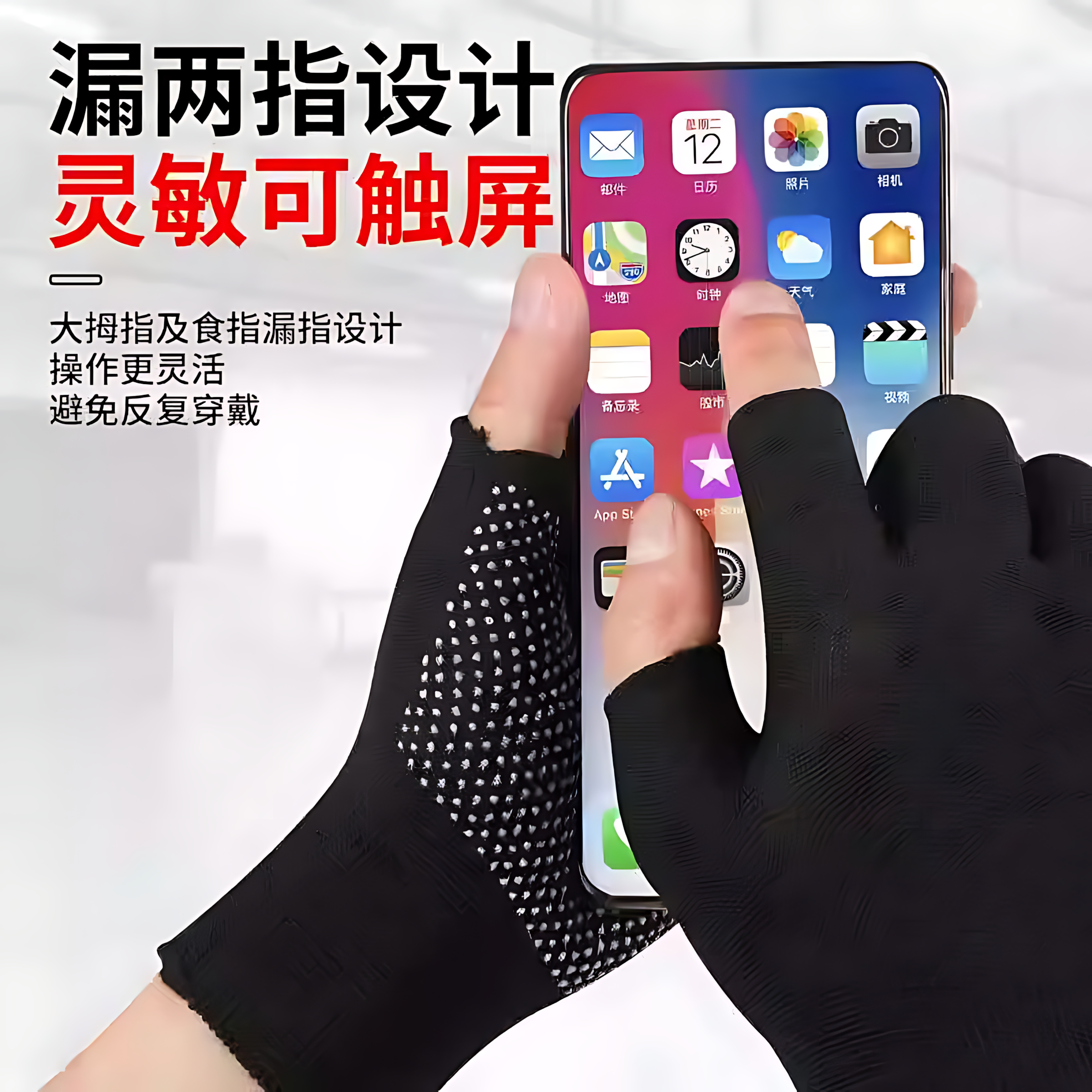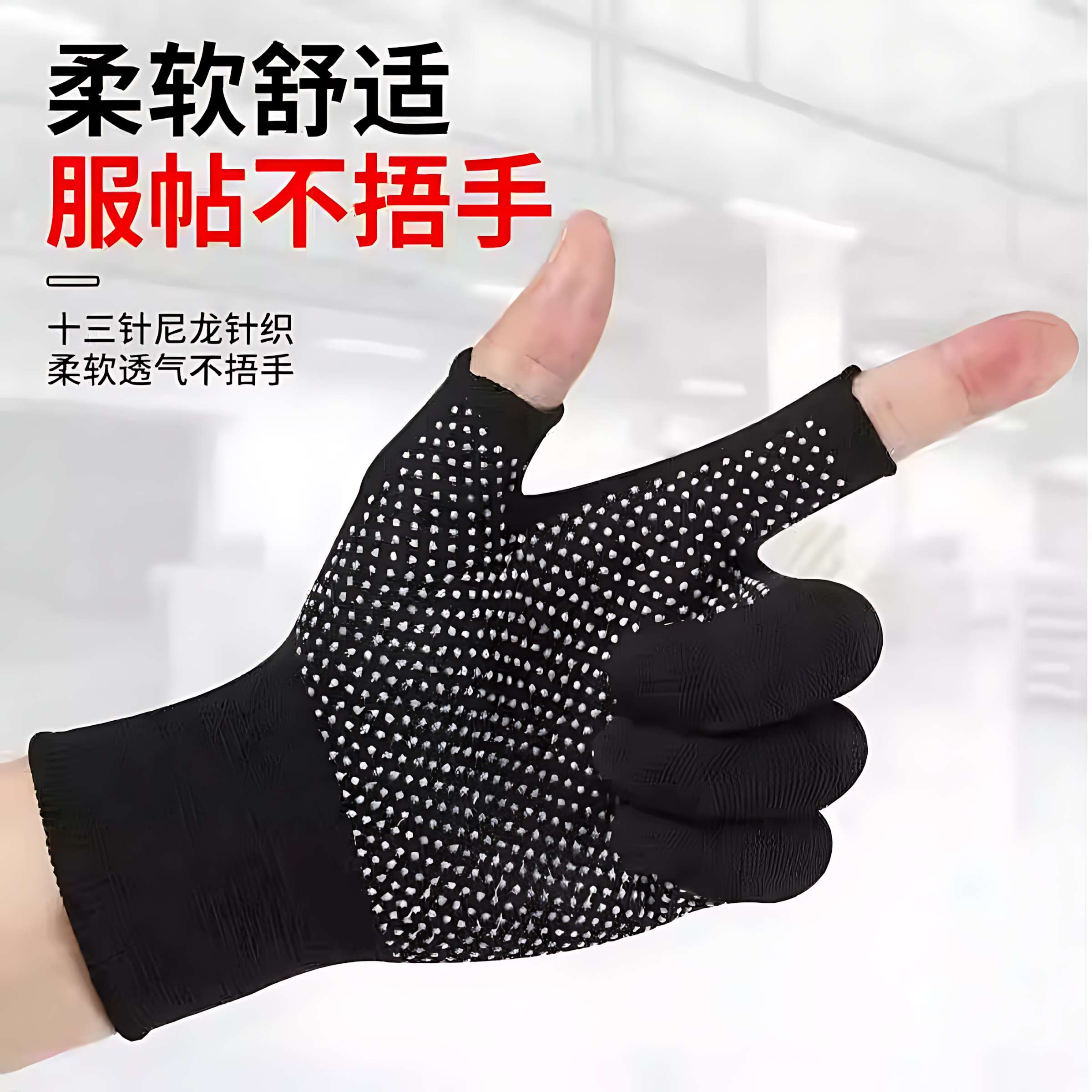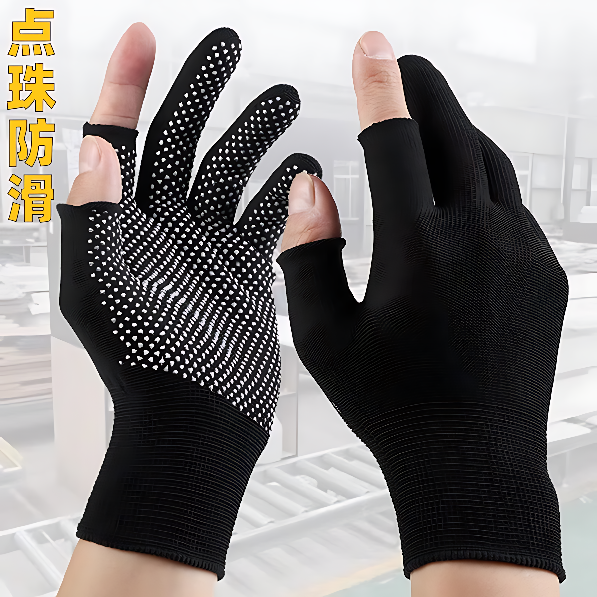 薄款打包手套快递员分拣专用劳保耐磨工作男女干活露二指防滑点胶