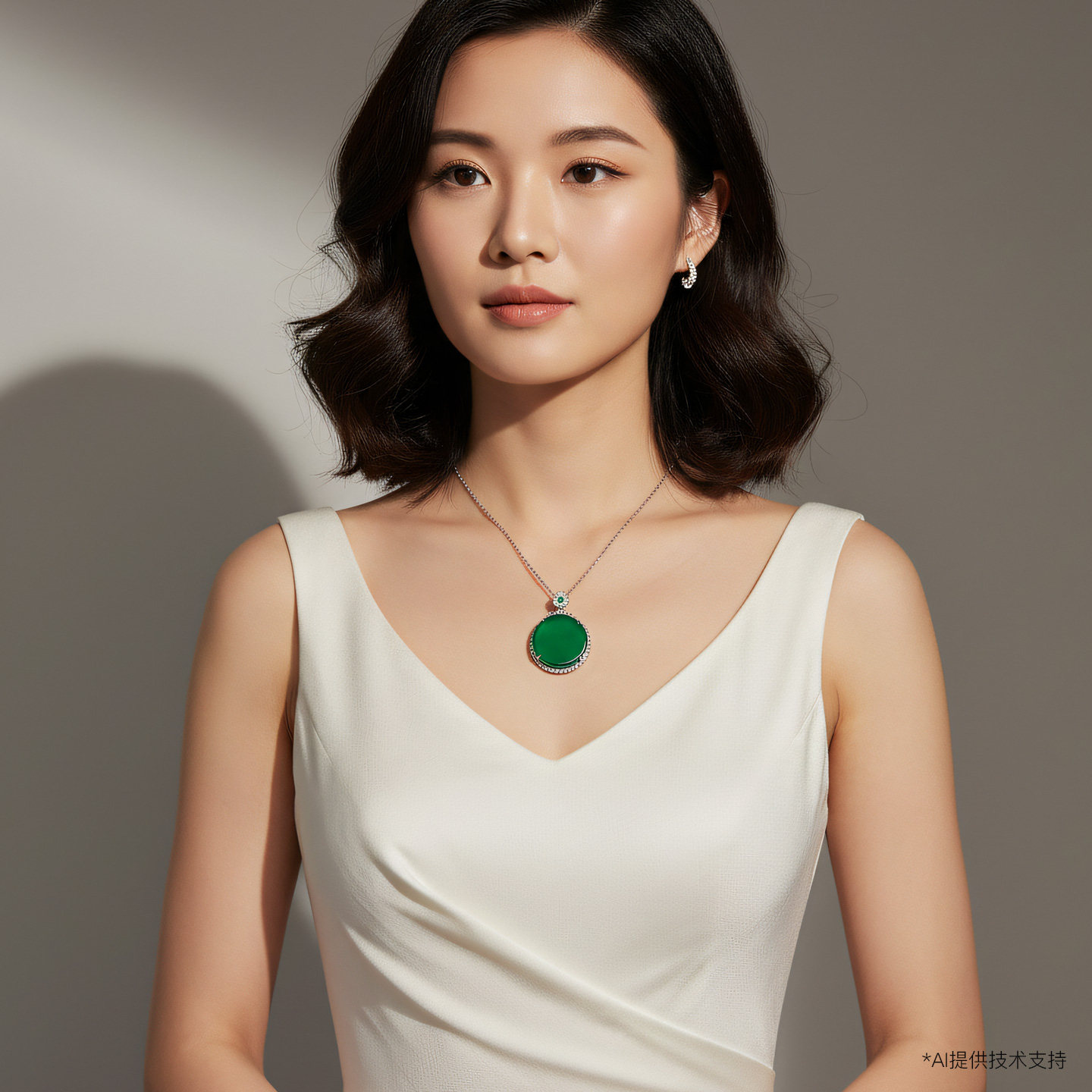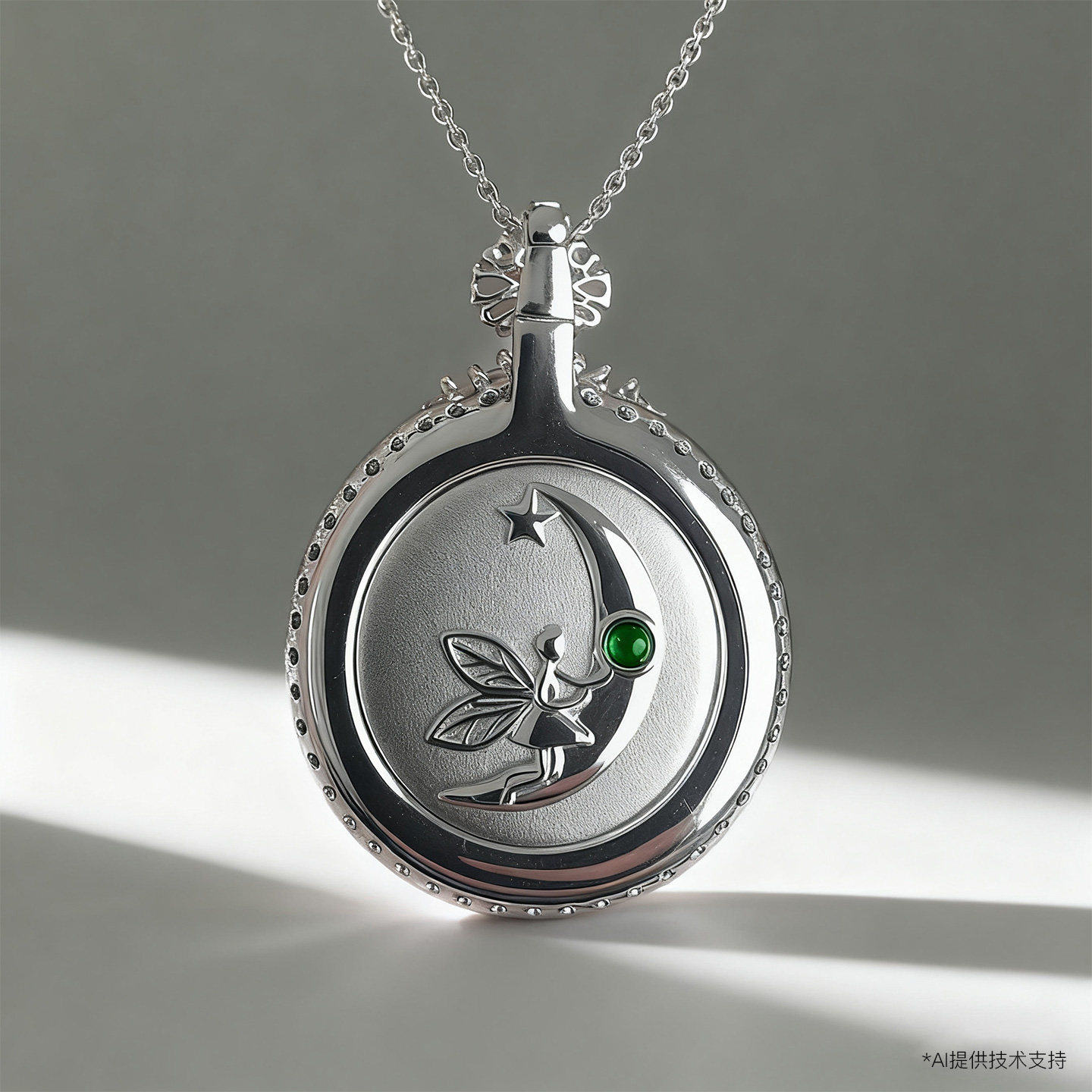 AILEQ纯银天然玉髓满绿圆形扣平安无事牌吊坠珠宝陈梦同款项链K10