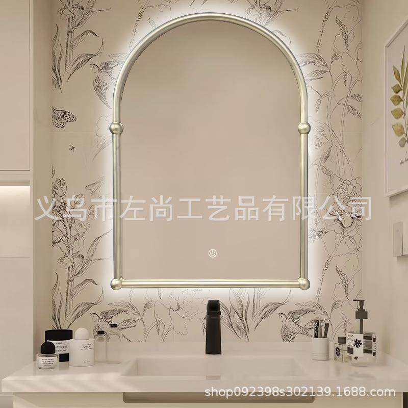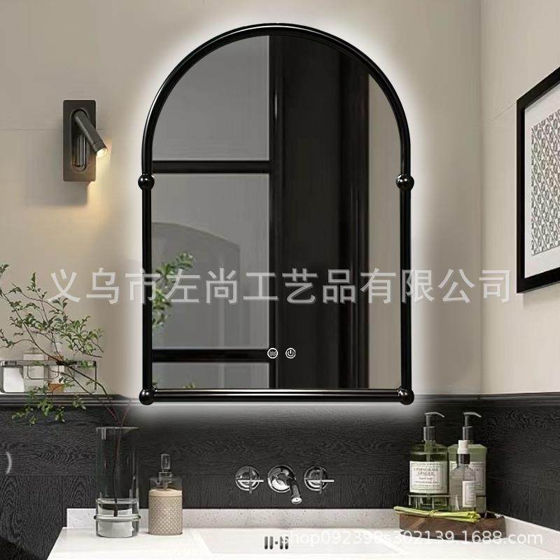 法式复古化妆镜带灯黑色梳妆台壁挂中古风卫生间智能浴室镜子挂墙