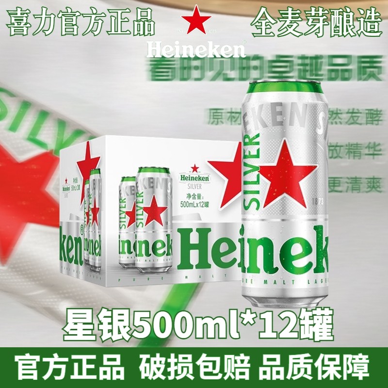 Heineken Silver/喜力星银罐500ml细罐装啤酒官方正品整箱畅饮