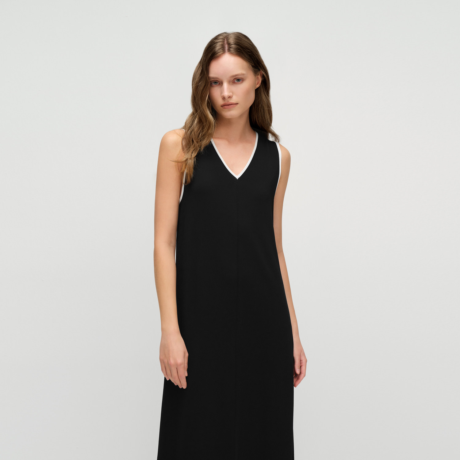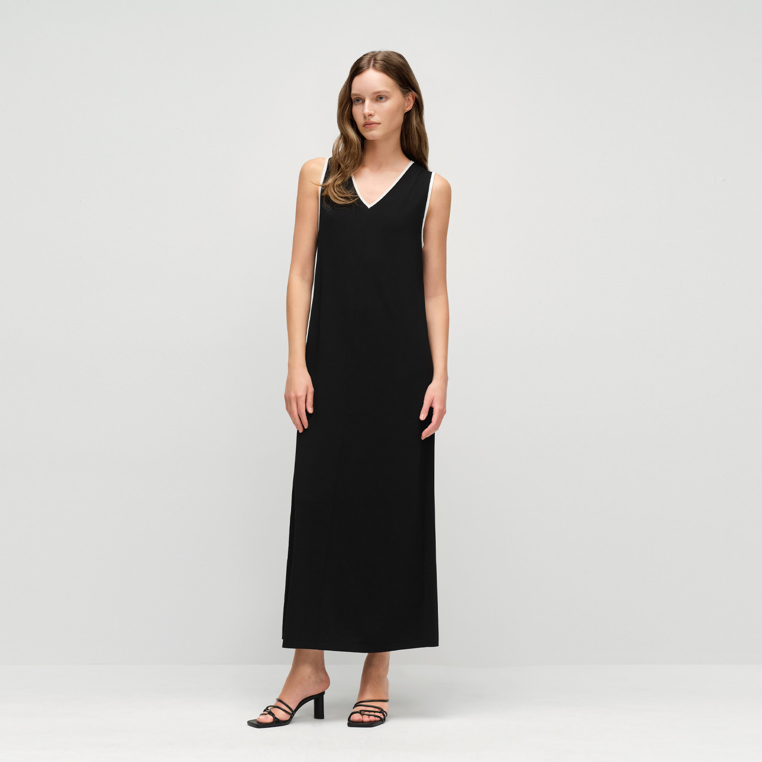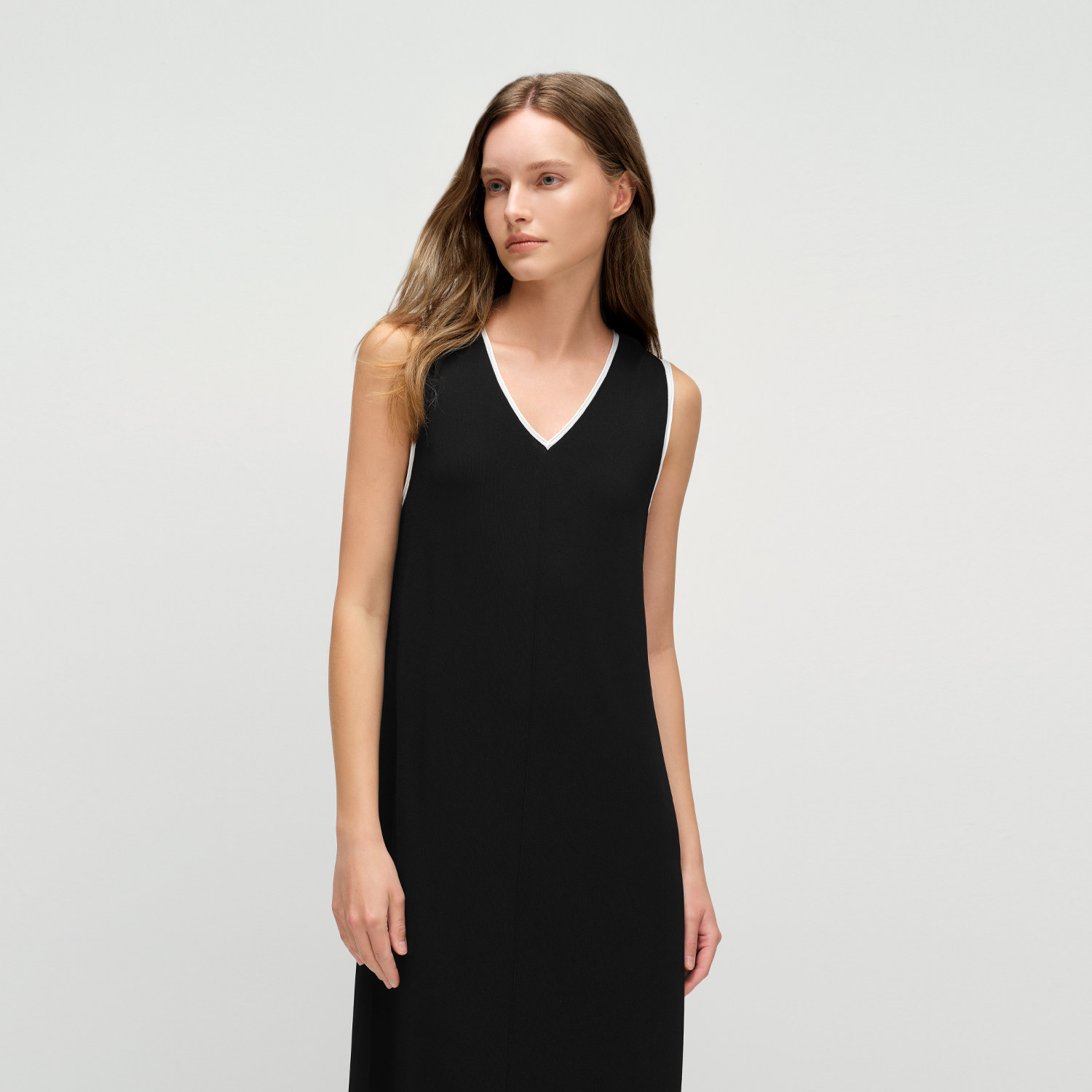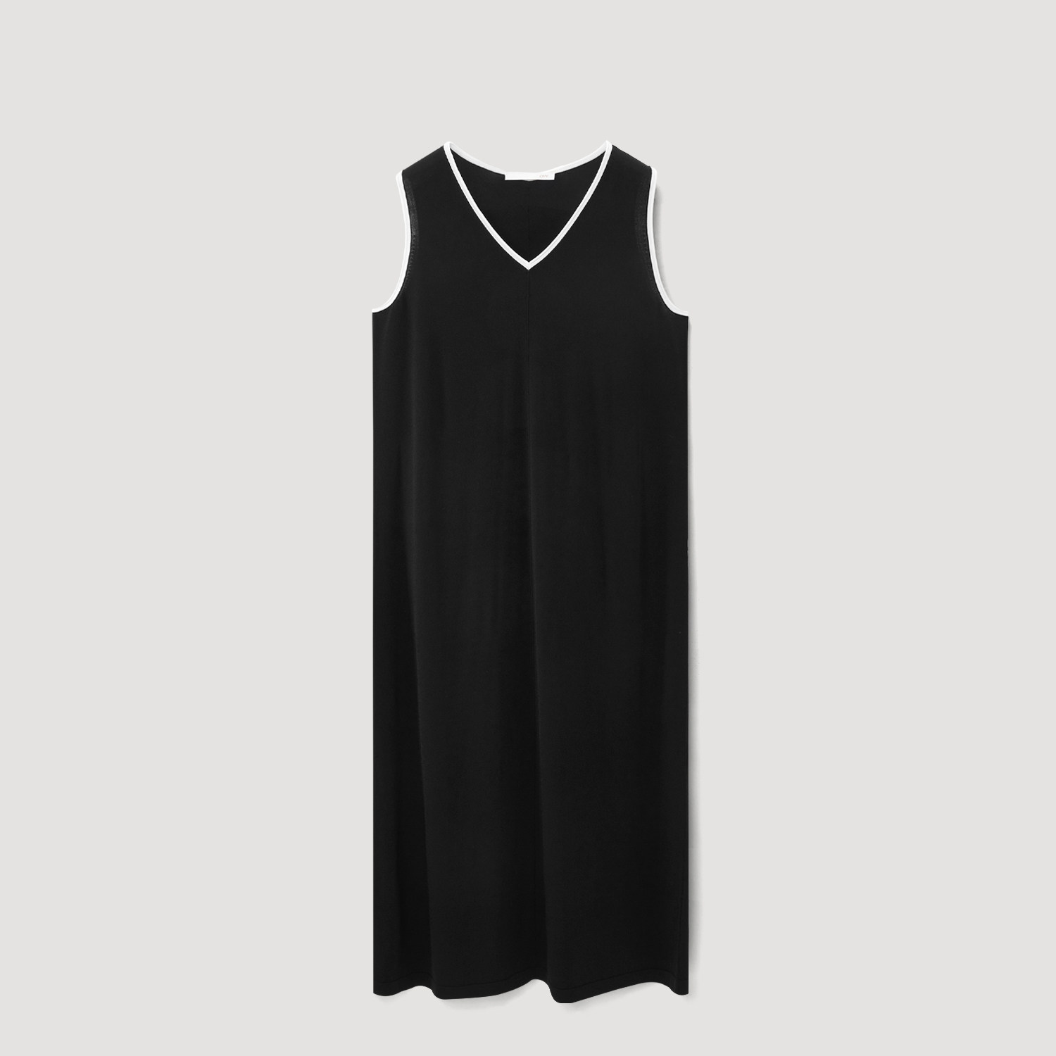OVV2025春夏新款女装淡人撞色边饰V领直筒无袖背心针织连衣裙