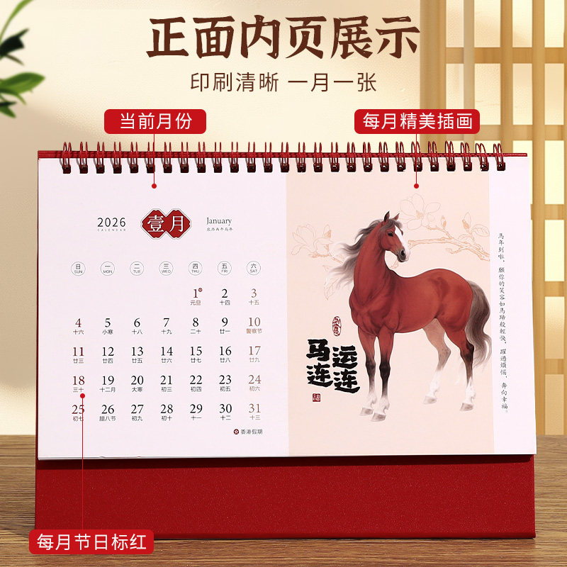 台历2026年新款日历定制logo创意简约小清新韩式办公年历个性中国风桌面摆件商务工作记事计划本订制广告月历