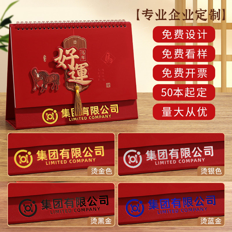 2026年新款台历中国红喜庆流苏新年月历定制商务办公室简约桌面摆件日历大格子记事打卡记录本可印企业logo